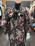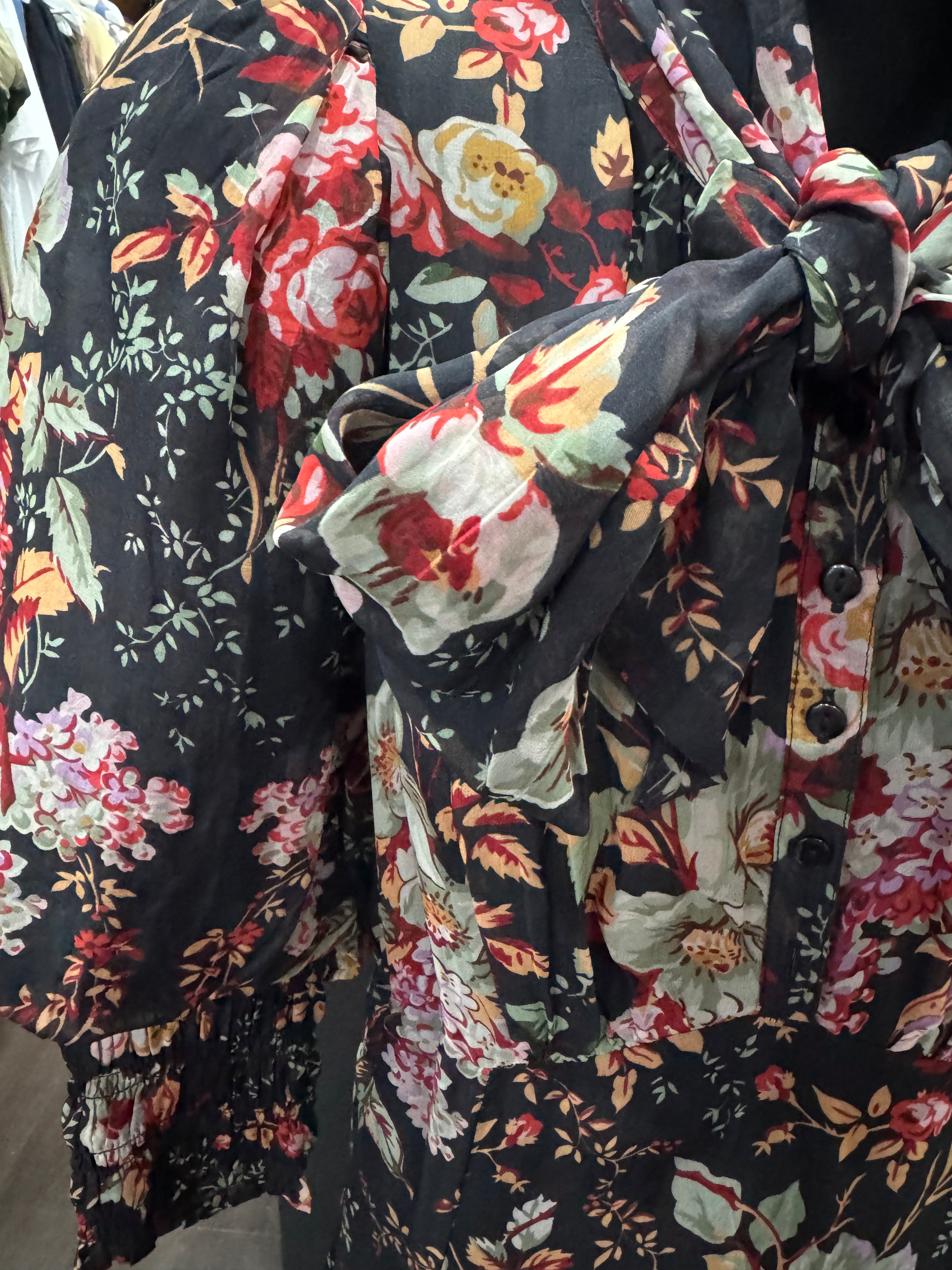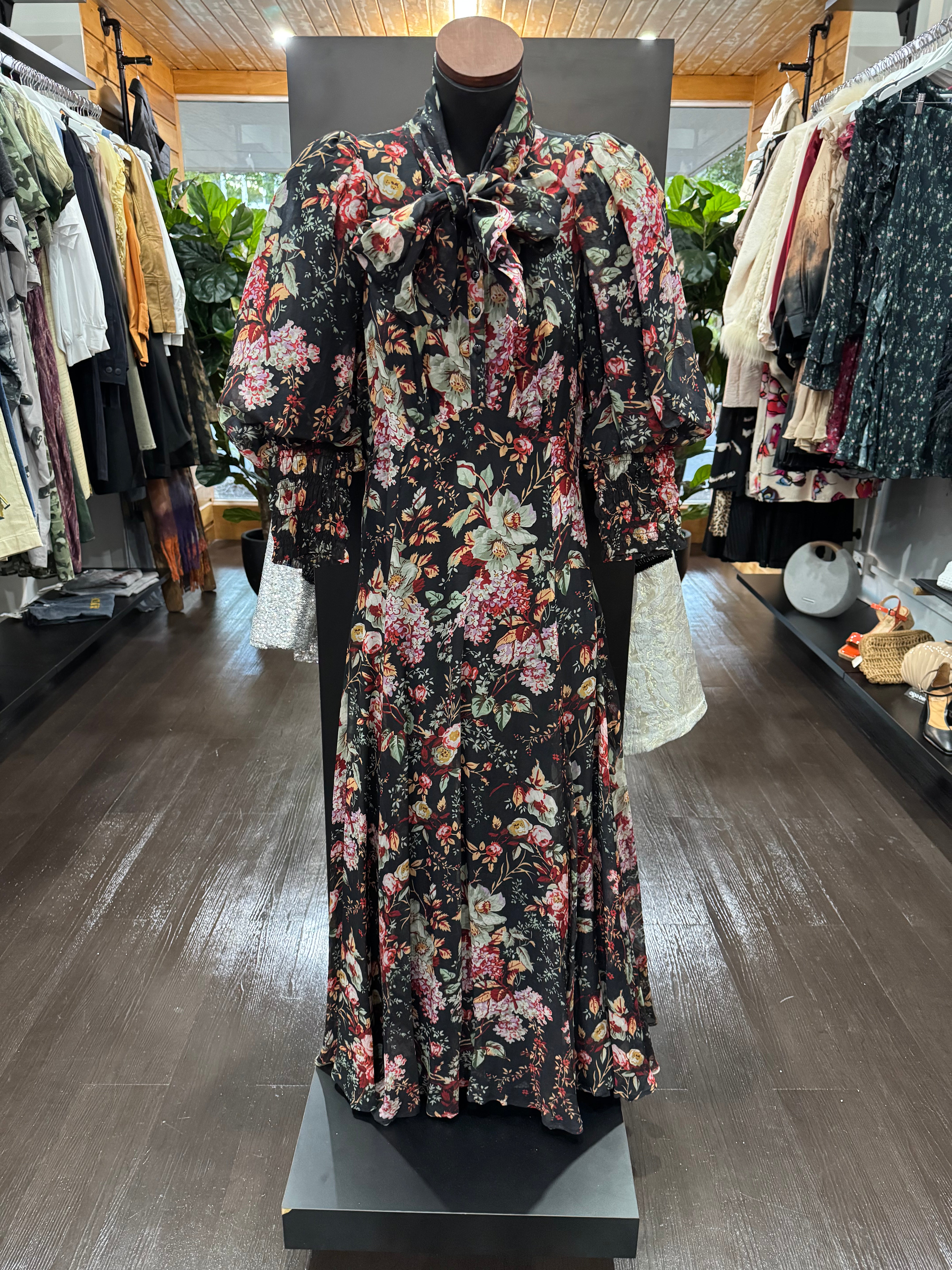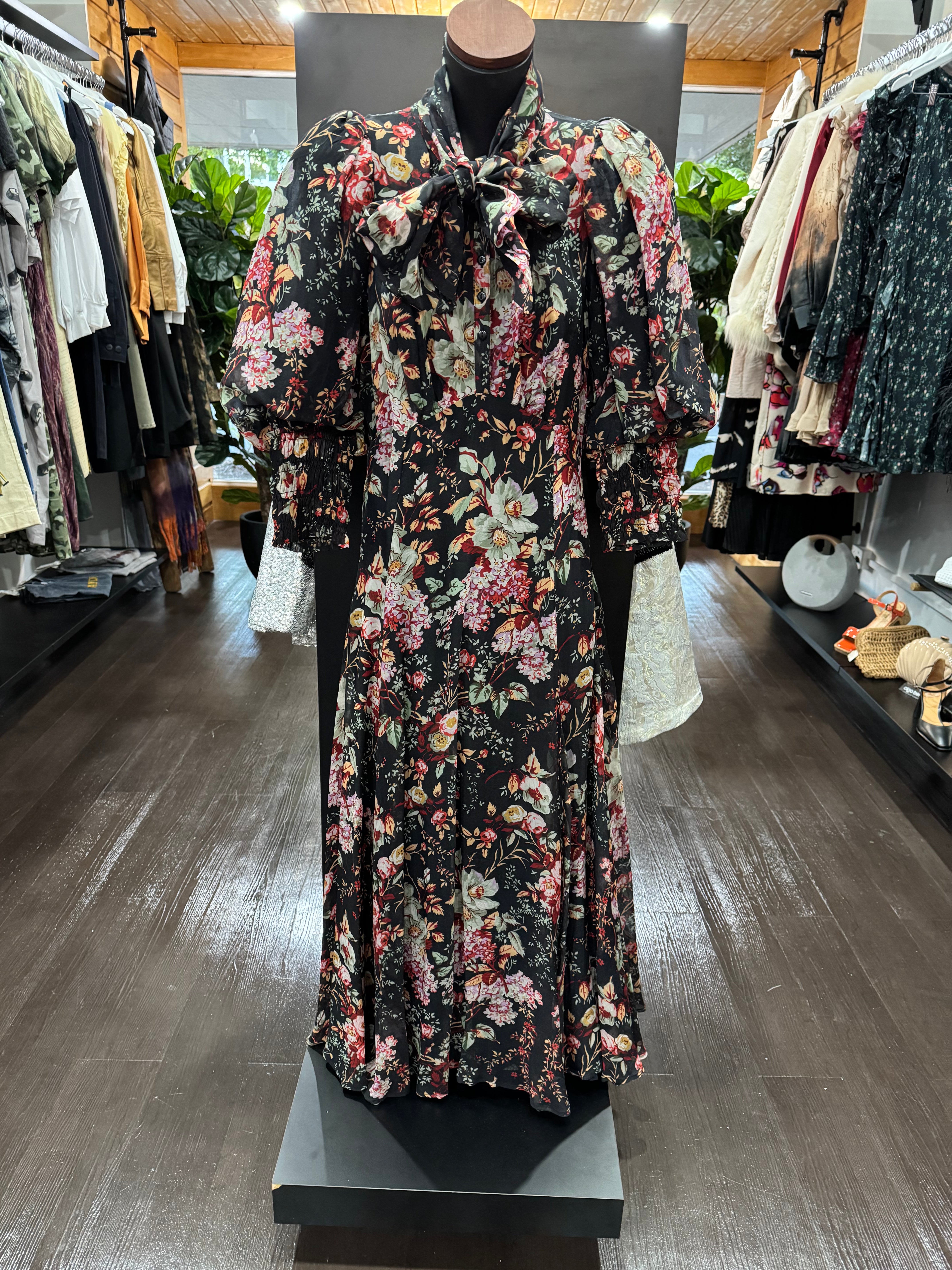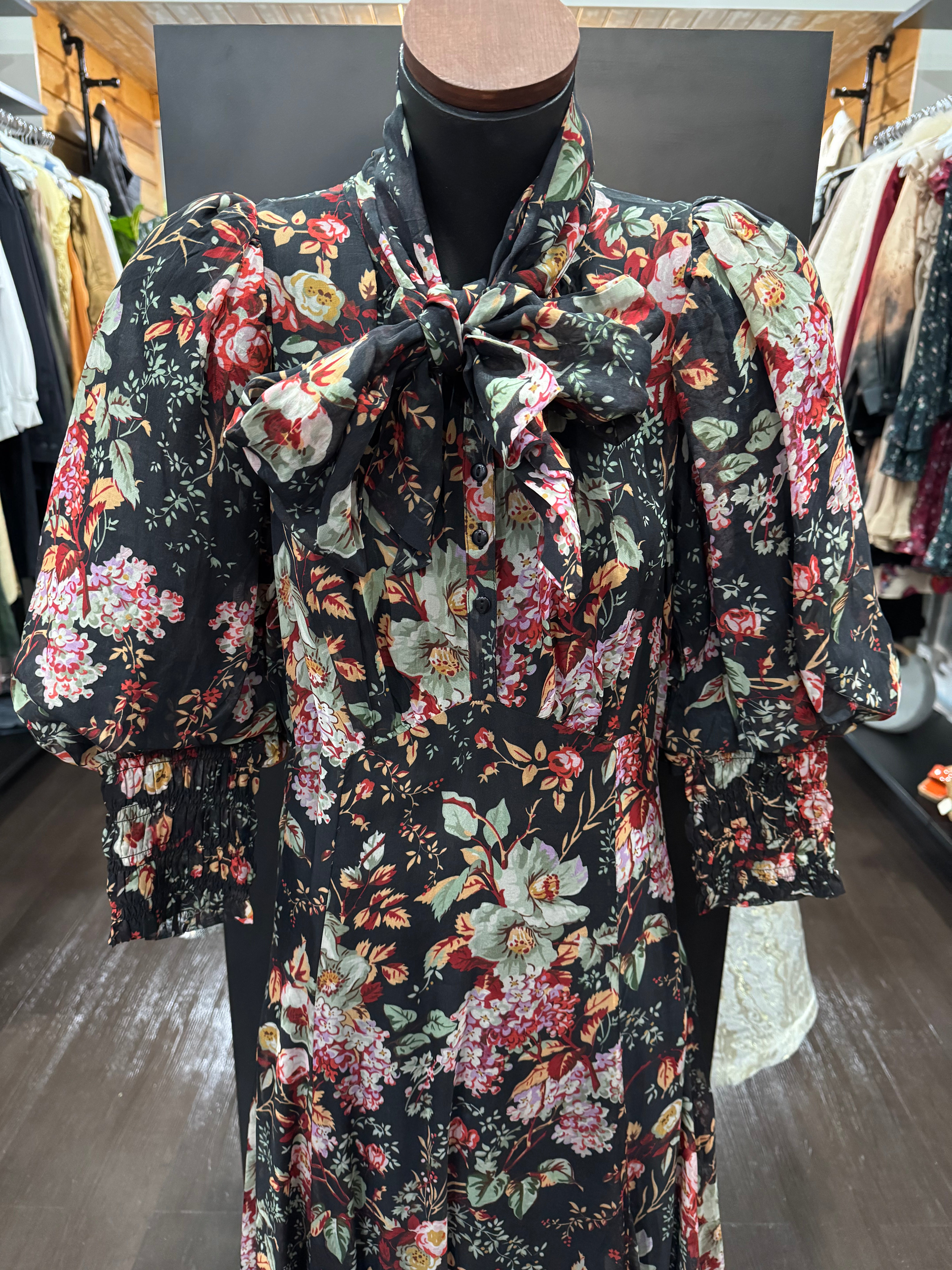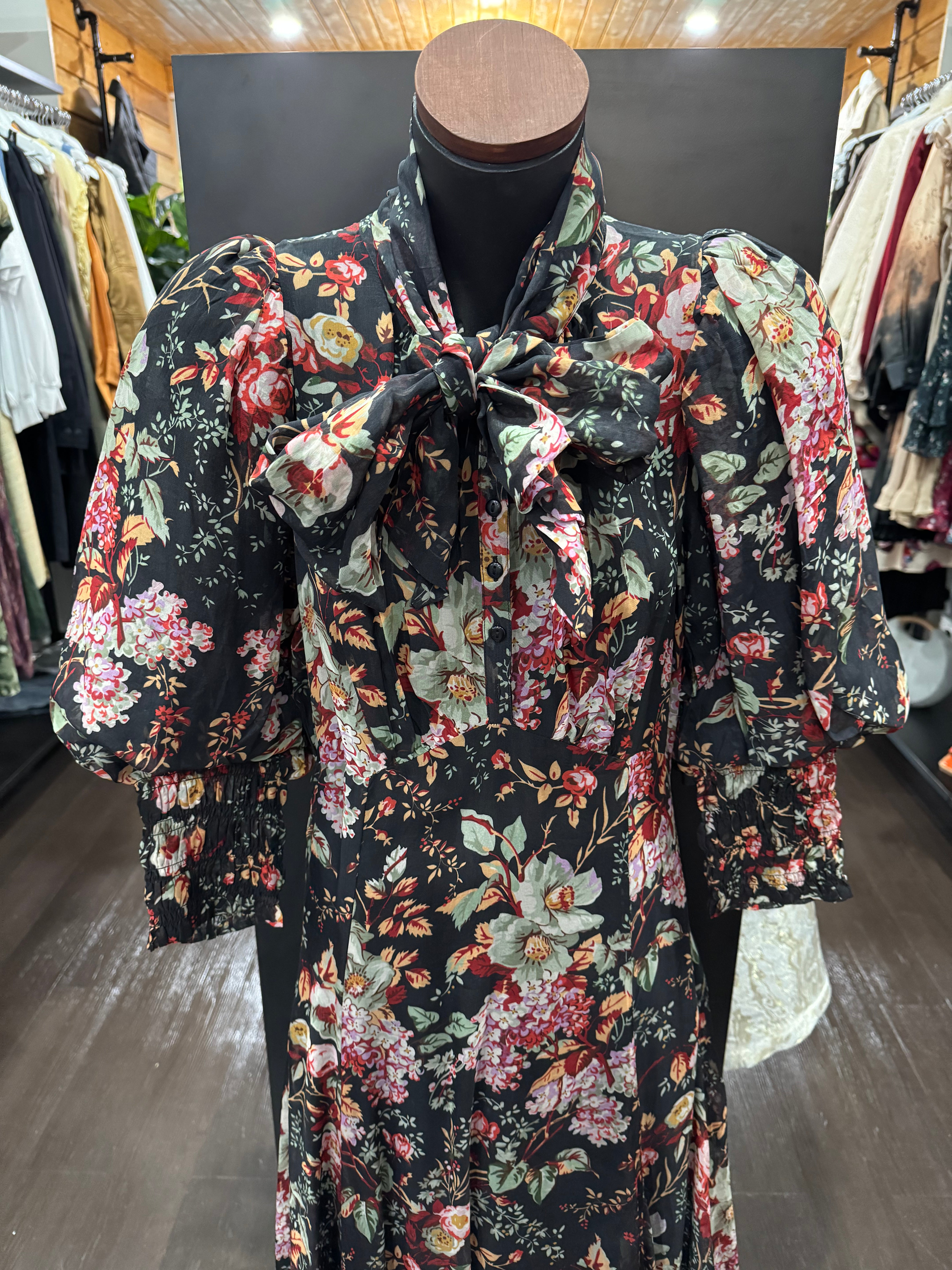 The Organza Midi Dress is cut in our elegant and slightly transparent, certified organza. It has a midi length, fitted waistline, and three-quarter long, puffed sleeves with elastic cuffs made of smocking. The dress has a round neckline with a tieband, and buttons down the chest.