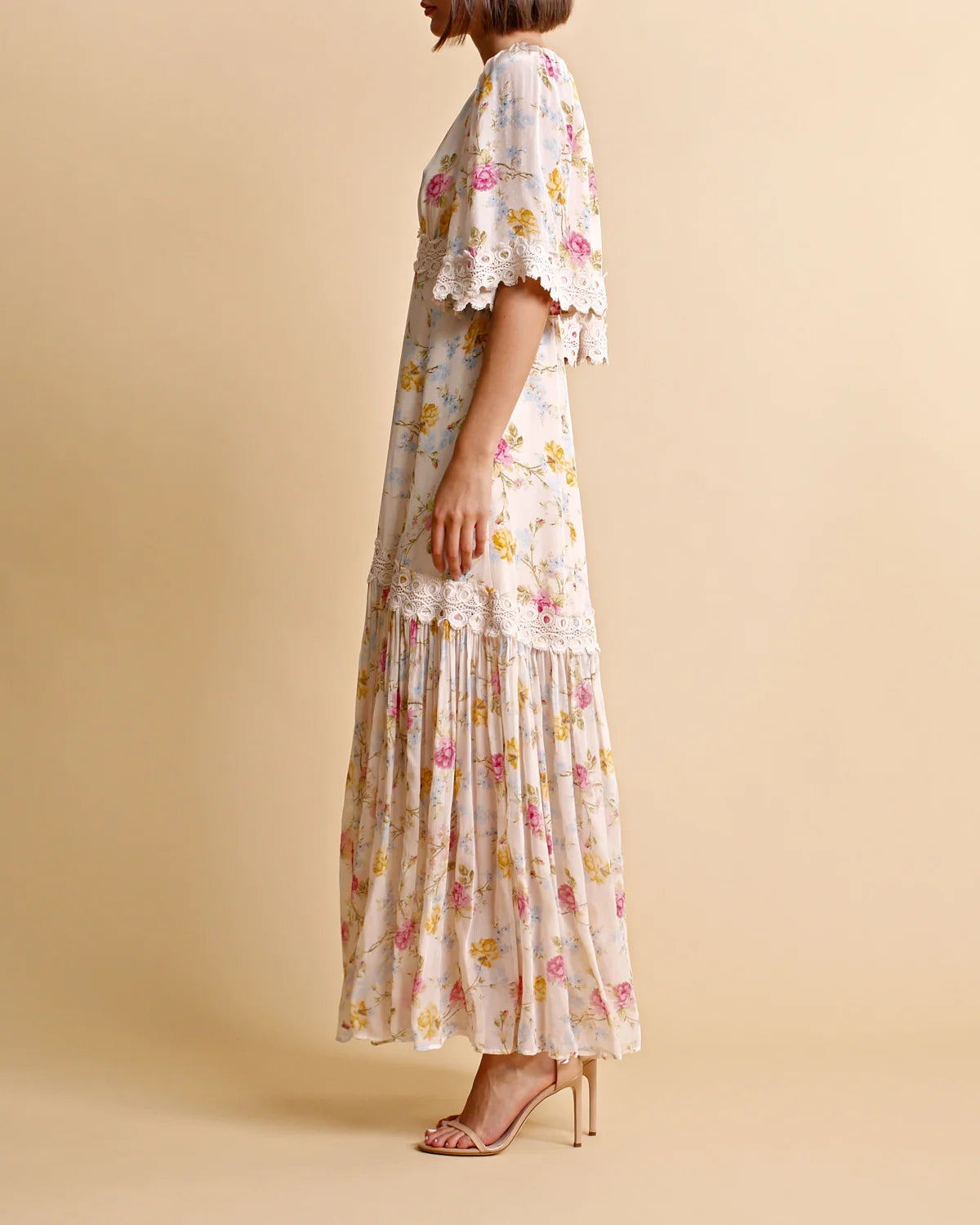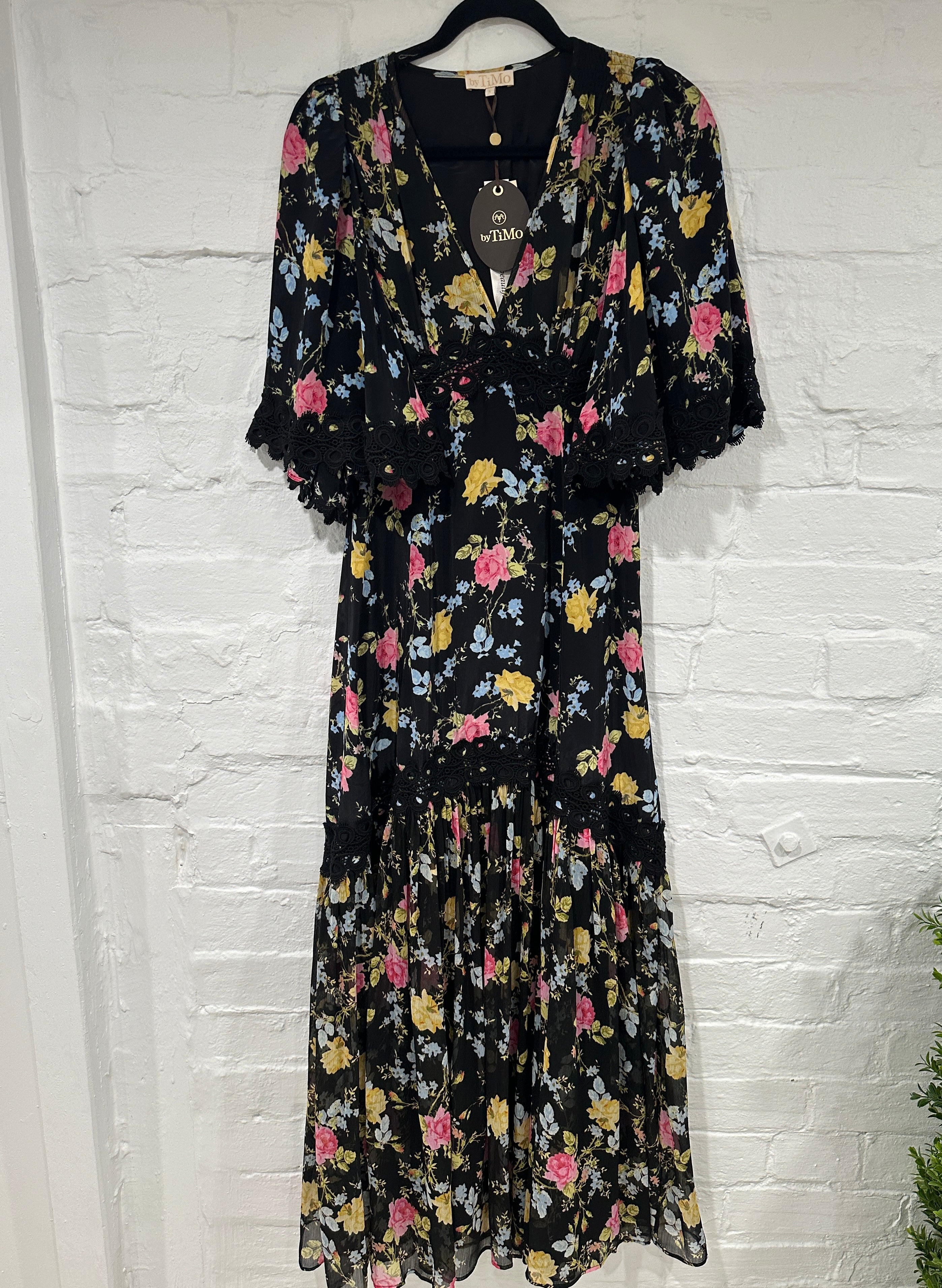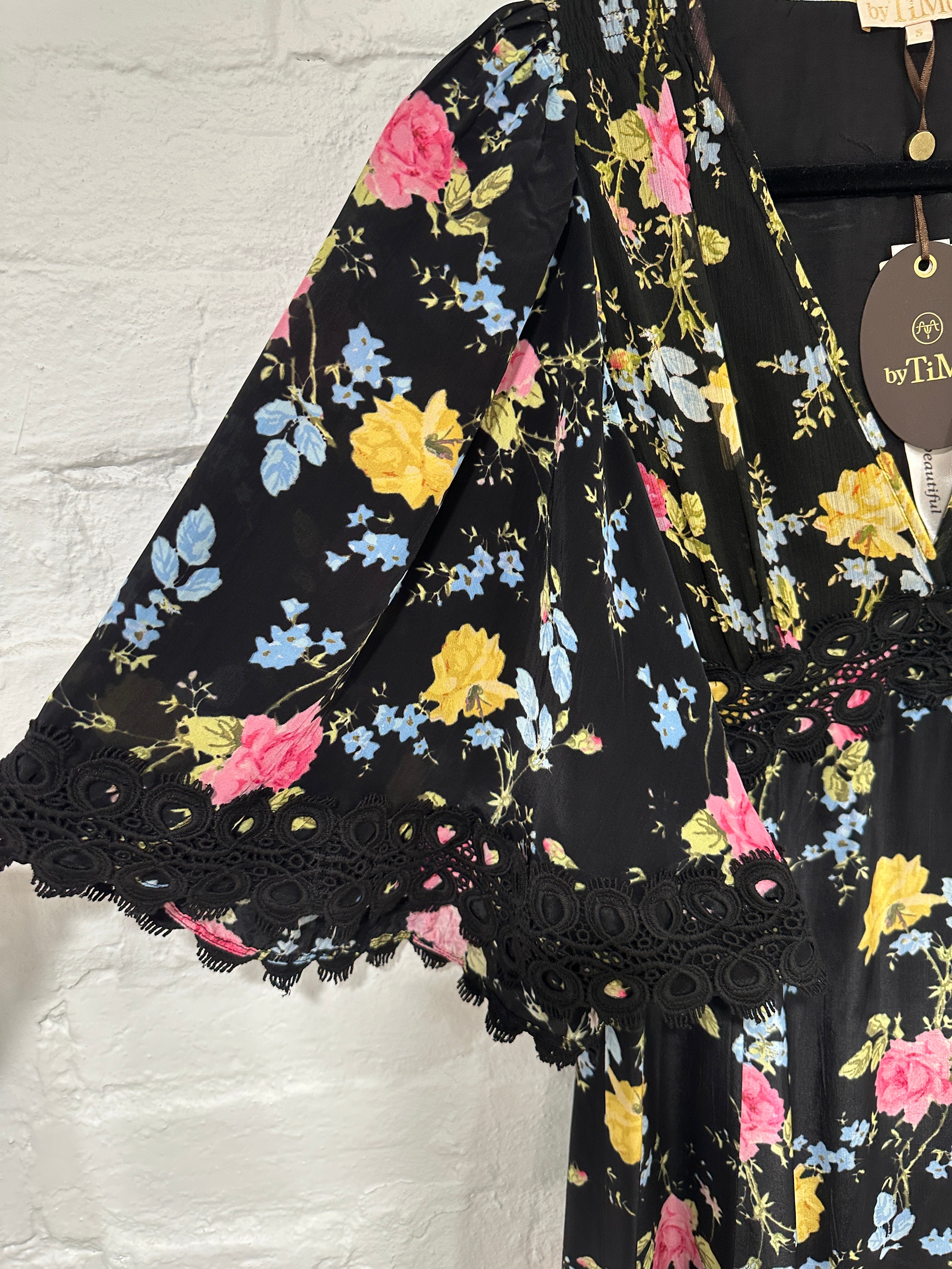 The Satin Embroidery Dress is cut in our soft and shiny FSC certified viscose quality. It has a maxi length, fitted waistline, voluminous skirt, and elbow-length, bell sleeves. The dress has a deep V-neck, and gathers down the middle of the skirt. It has beautiful lace details in the waistline, the cuffs and the skirt. The dress closes in the side with a zipper.