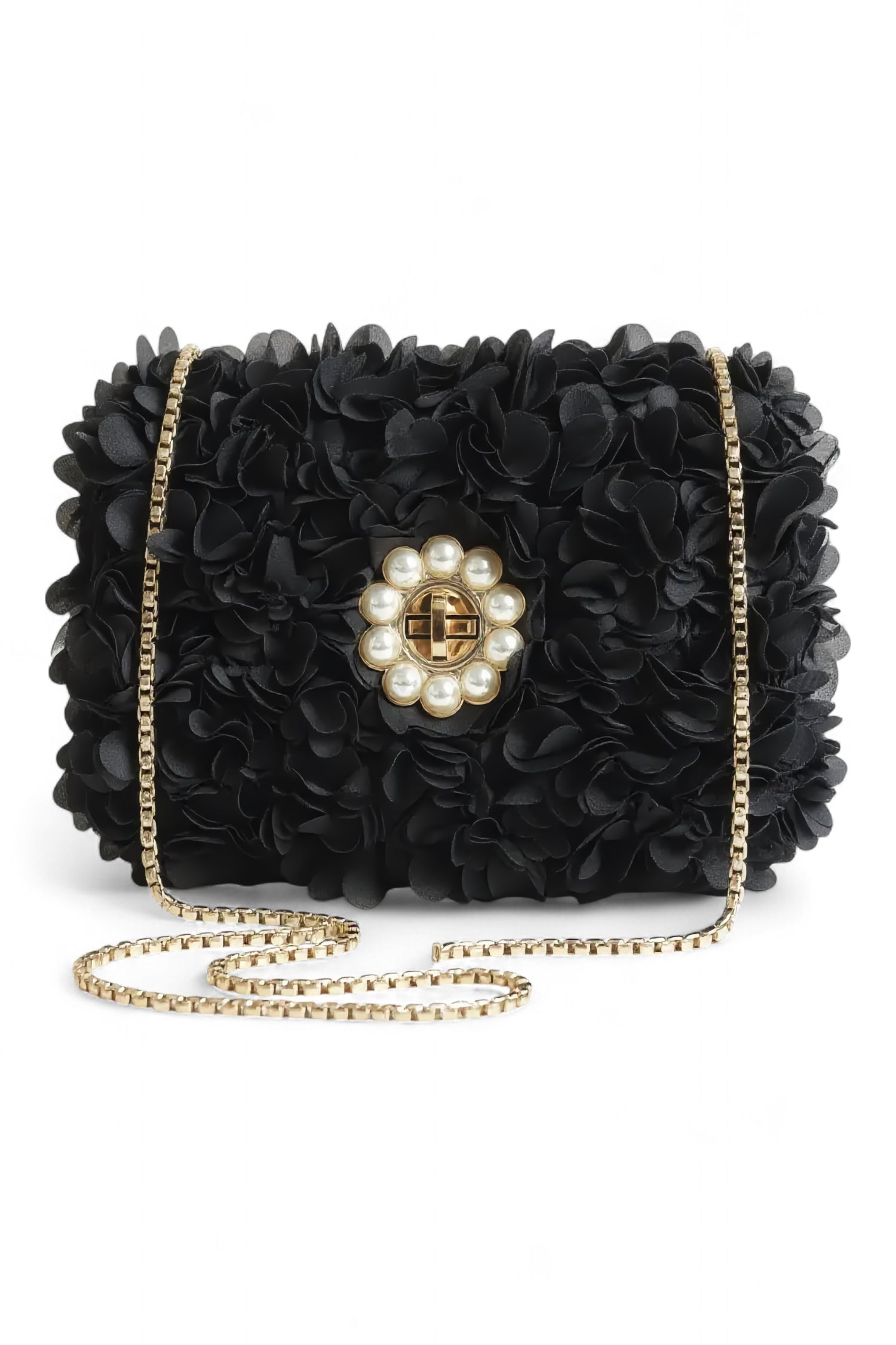 Black Flower Pearl Clasp Clutch
