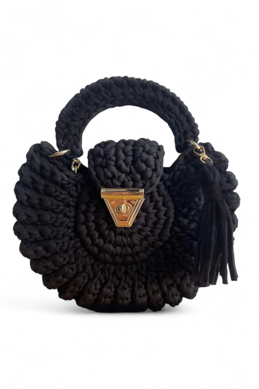 - Handmade crocheted bag made of premium T-shirt materials