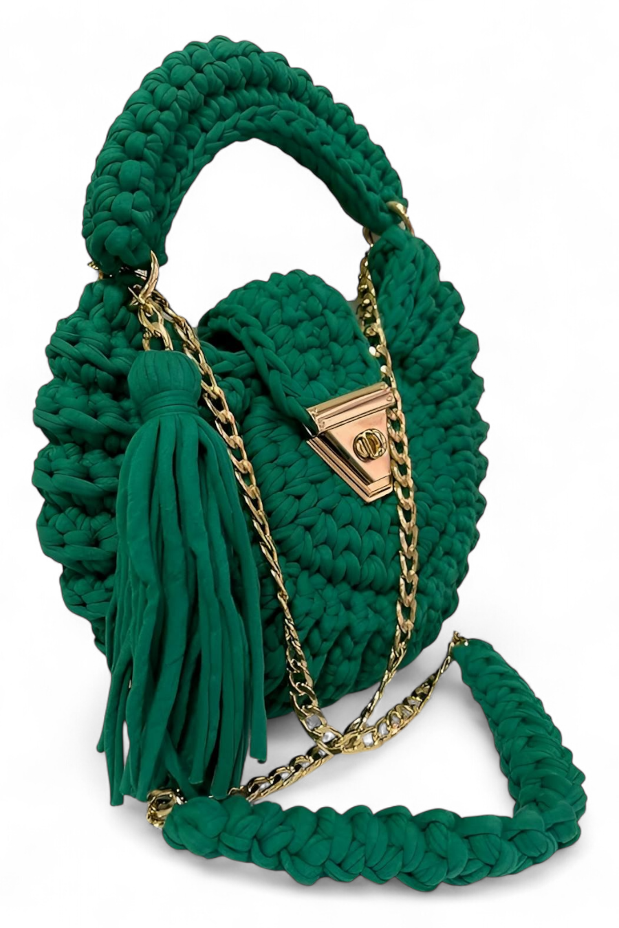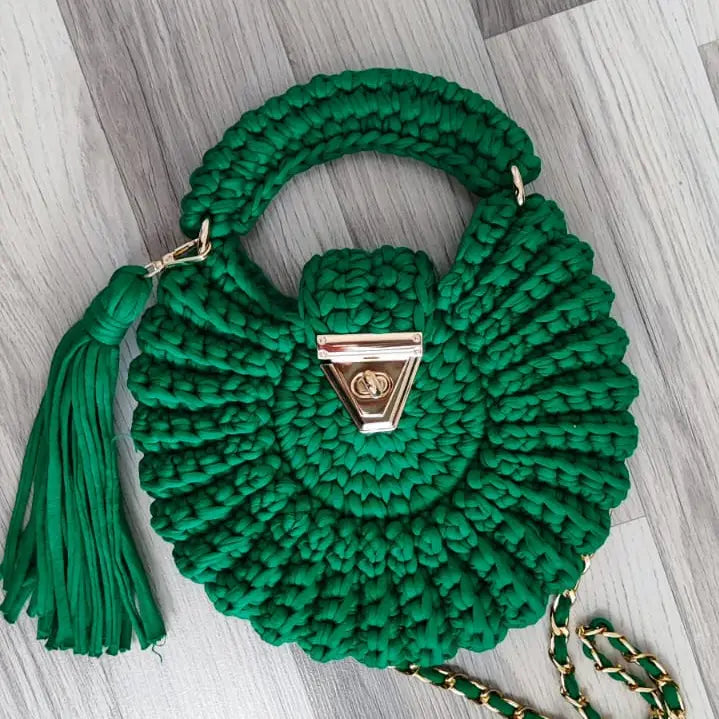 Handmade in Turkey from premium crochet and recycled t-shirt yarn, the Crochet Round Mussel Clutch is a stylish, sustainable accessory with a playful, textured finish. Measuring 28 cm in diameter, it’s designed to wear three ways — making it equally ideal for casual days or dressed-up evenings.