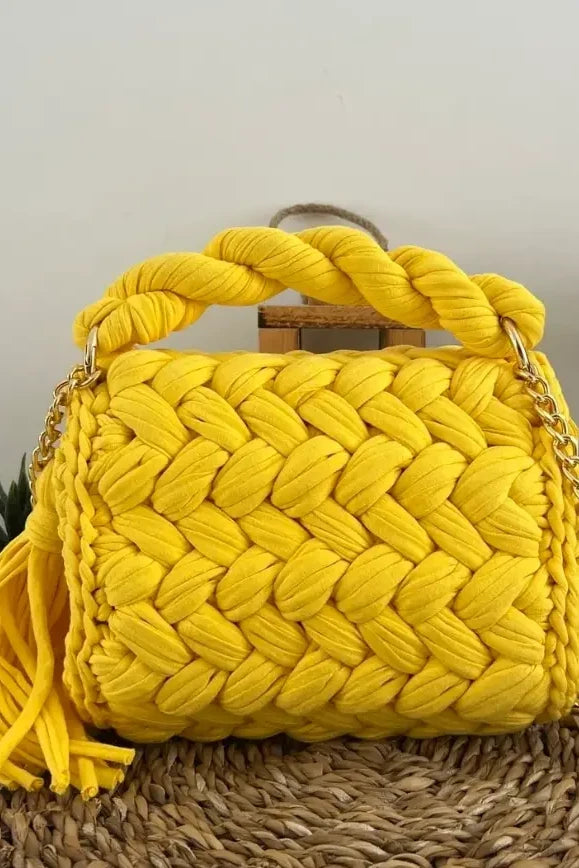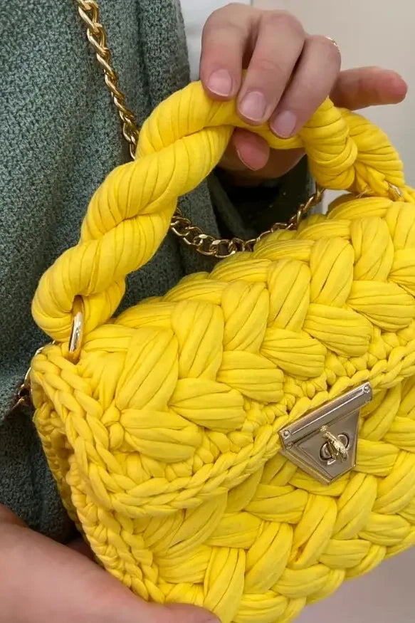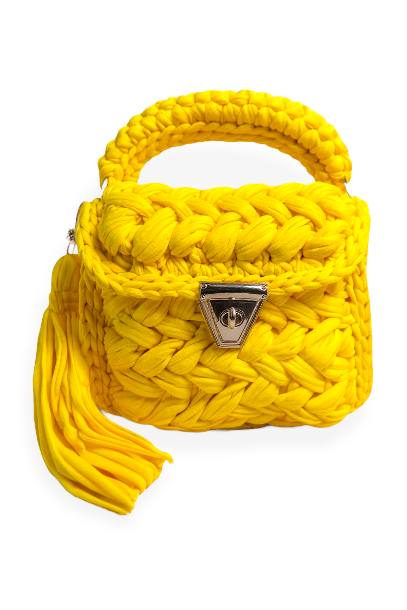 - Handmade crocheted bag made of premium T-shirt materials