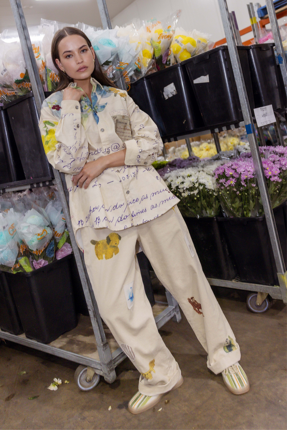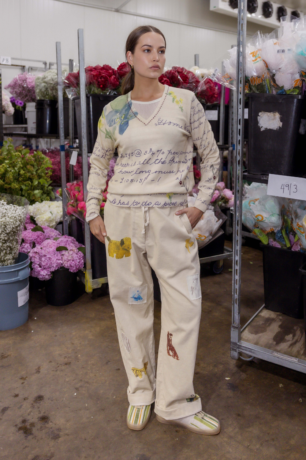 Introducing a fresh design from Circular by M.A.Dainty – the Journal Pants! Crafted from thick, cozy corduroy, these pants feature a relaxed, wide-leg silhouette with a high-rise waist. The front zipper and adjustable drawstring ensure a perfect fit, while the two in-seam side pockets add both style and functionality. What makes these pants truly stand out is the stunning patchwork embroidery across each leg, featuring vibrant paintings, logos, motifs, and more. These one-of-a-kind pants are a must-have for the upcoming autumn and winter seasons, offering both comfort and unique flair.