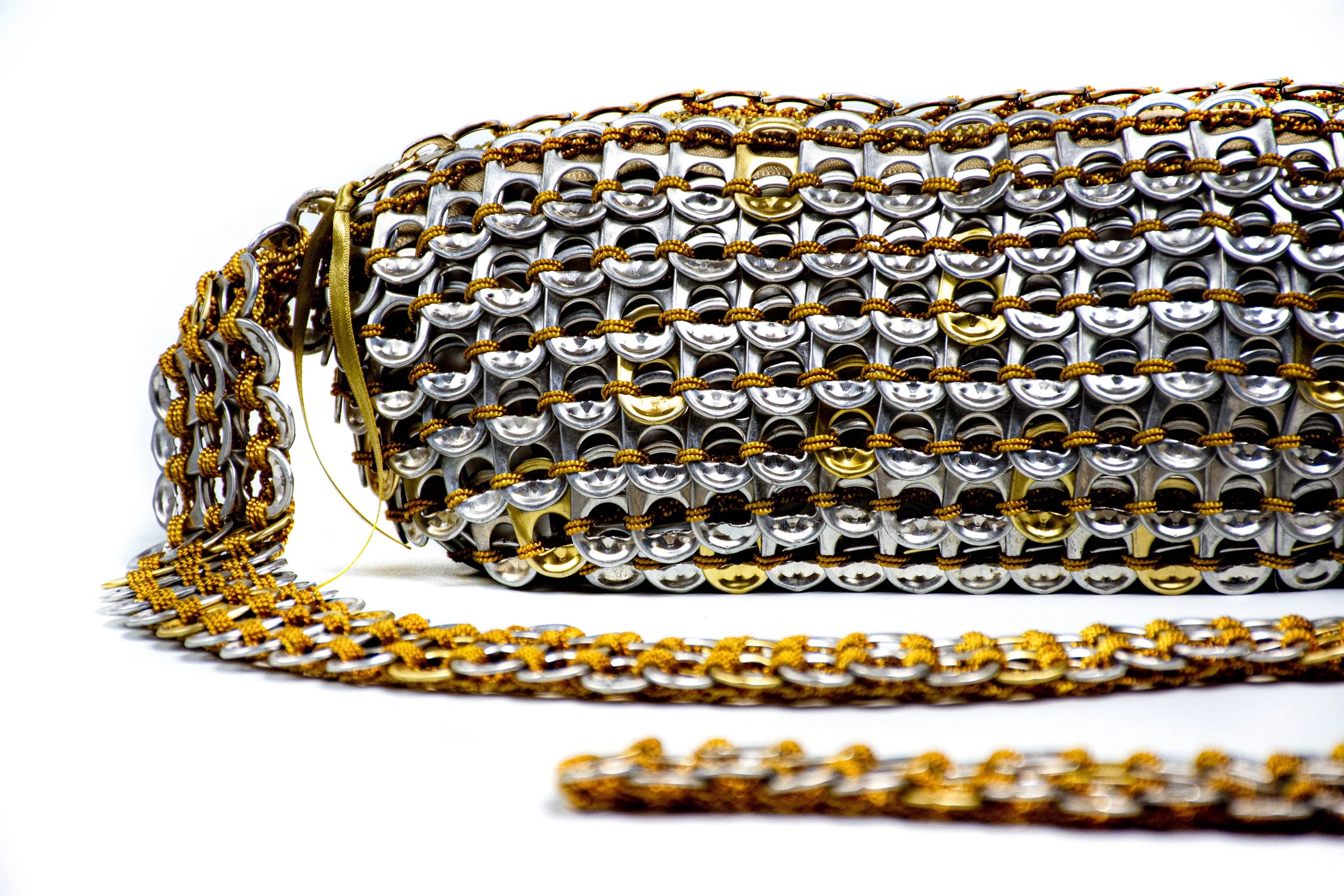 The manufacturing process of our bags starts with the recycling and cleaning of the aluminum pull tabs, which is our main material. The pull tabs are sewed back together to create our Bags, which are extremely strong and will last a lifetime.