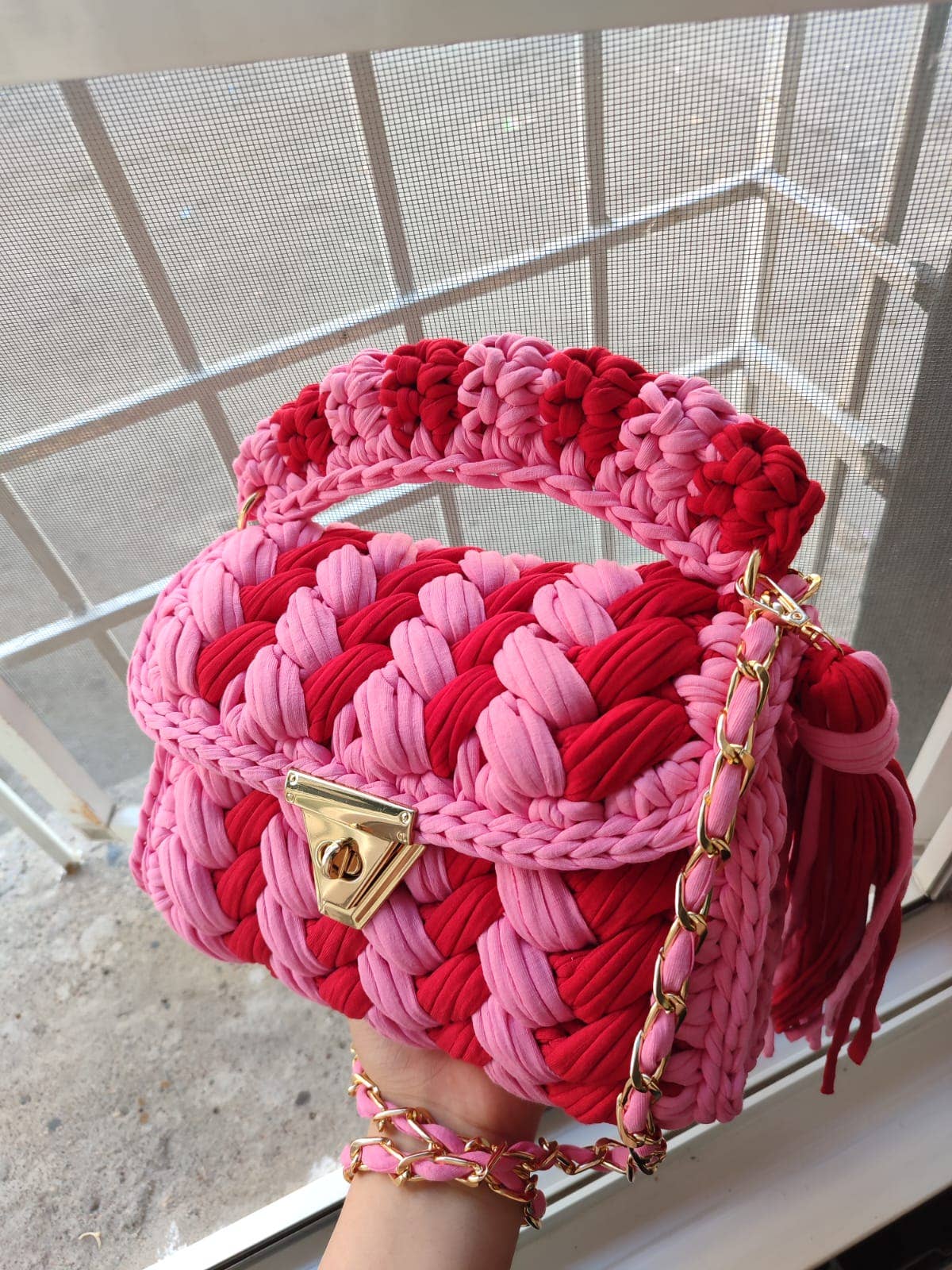 * πππππππ ππππππππ πππππ: Handmade crocheted bag made of premium T-shirt combed yarn with cottons.