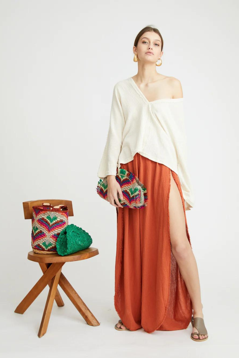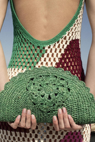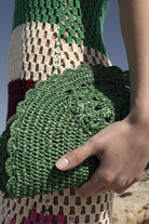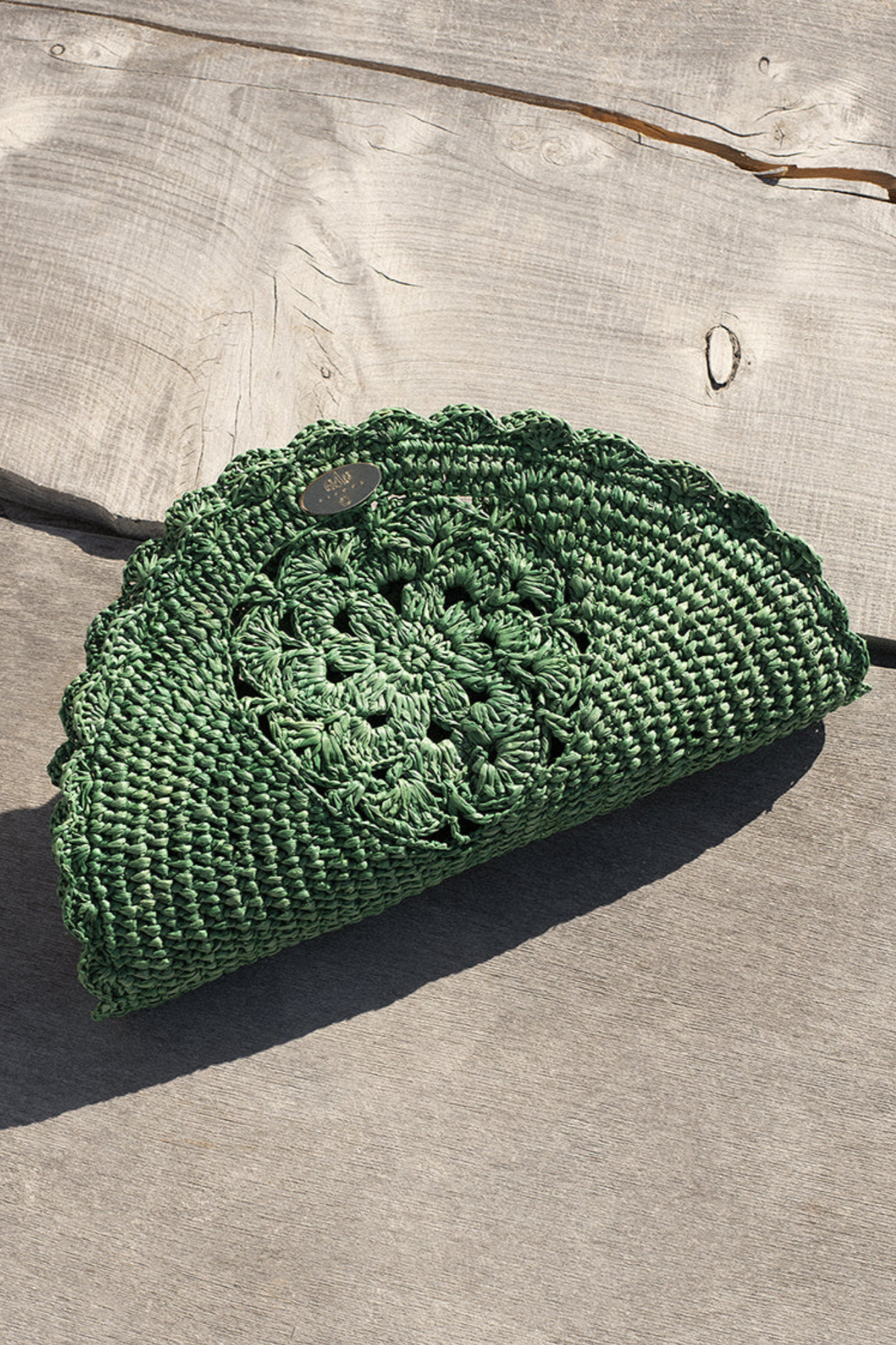 Our iconic sun clutch raffia is available this season with a flower worked in relief and comes in many colors. Has a magnetic closure. Handmade in Madasgascar, our clutch bag is decorated with a gold logo and is worn in the hand. The handicraft respects a sustainable and environmentally friendly production with local communities by promoting the employment of women from disadvantaged backgrounds. This bag comes with a protective cover. Each model is unique and may have irregularities due to the natural character of the fiber and its handmade.