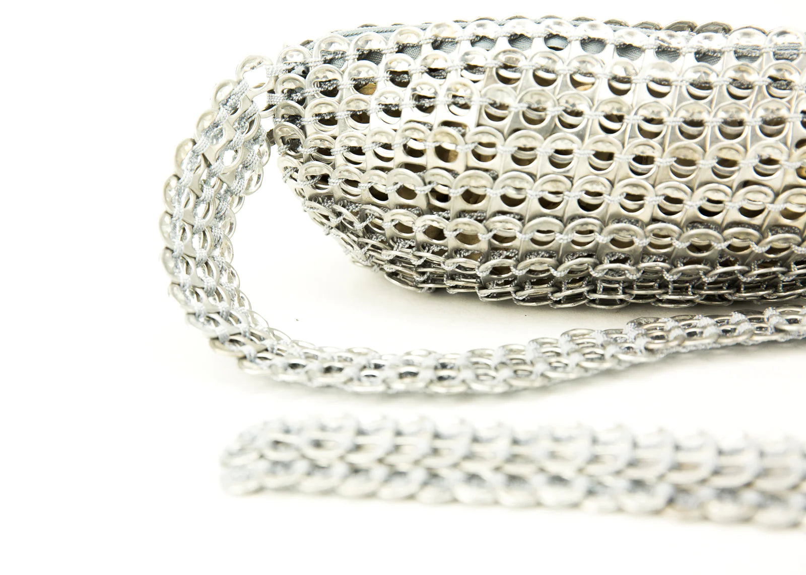 The manufacturing process of our bags starts with the recycling and cleaning of the aluminum pull tabs, which is our main material. The pull tabs are sewed back together to create our Bags, which are extremely strong and will last a lifetime.