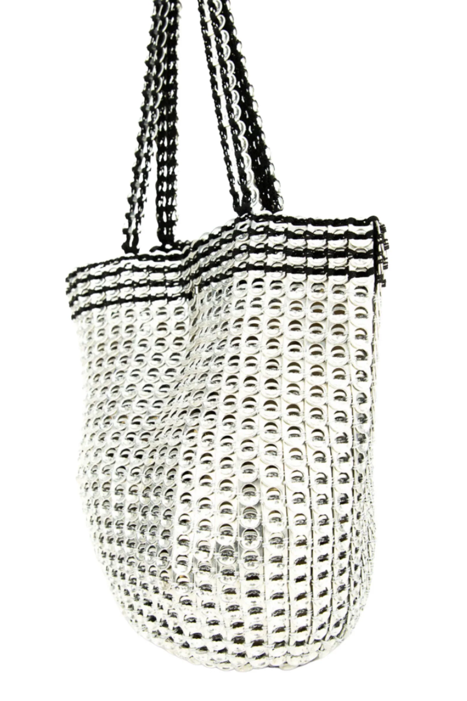 The manufacturing process of our bags starts with the recycling and cleaning of the aluminum pull tabs, which is our main material. The pull tabs are sewed back together to create our Bags, which are extremely strong and will last a lifetime.