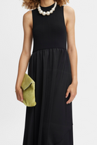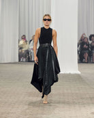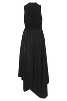 This easy dress has a shaped fit and maxi length with an asymmetrical hem. The high neck and sleeveless sleeves make it feminine and flattering. A must have in every wardrobe. Wear this for any occasion dressed up or down.