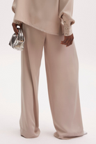 The pants on the model have been taken down. Therefore, they will be shorter when you receive them. If you need more length, you can easily take them down yourself. Pair back with the Sloan Blouse in String for a clean and effortless look. Also Available in Black and Red Alert.