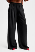 A floor-length, wide-leg pant with front pleats. In an oversized fit, with an elastic waist. Made from a blend of recycled materials in black and bison. A great way to celebrate the season’s earthy colours, wear it together with the matching Sloan GZ shirt. The pants on the model have been taken down. Therefore, they will be shorter when you receive them. If you need more length, you can easily take them down yourself. Also Available in Red Alert and String.