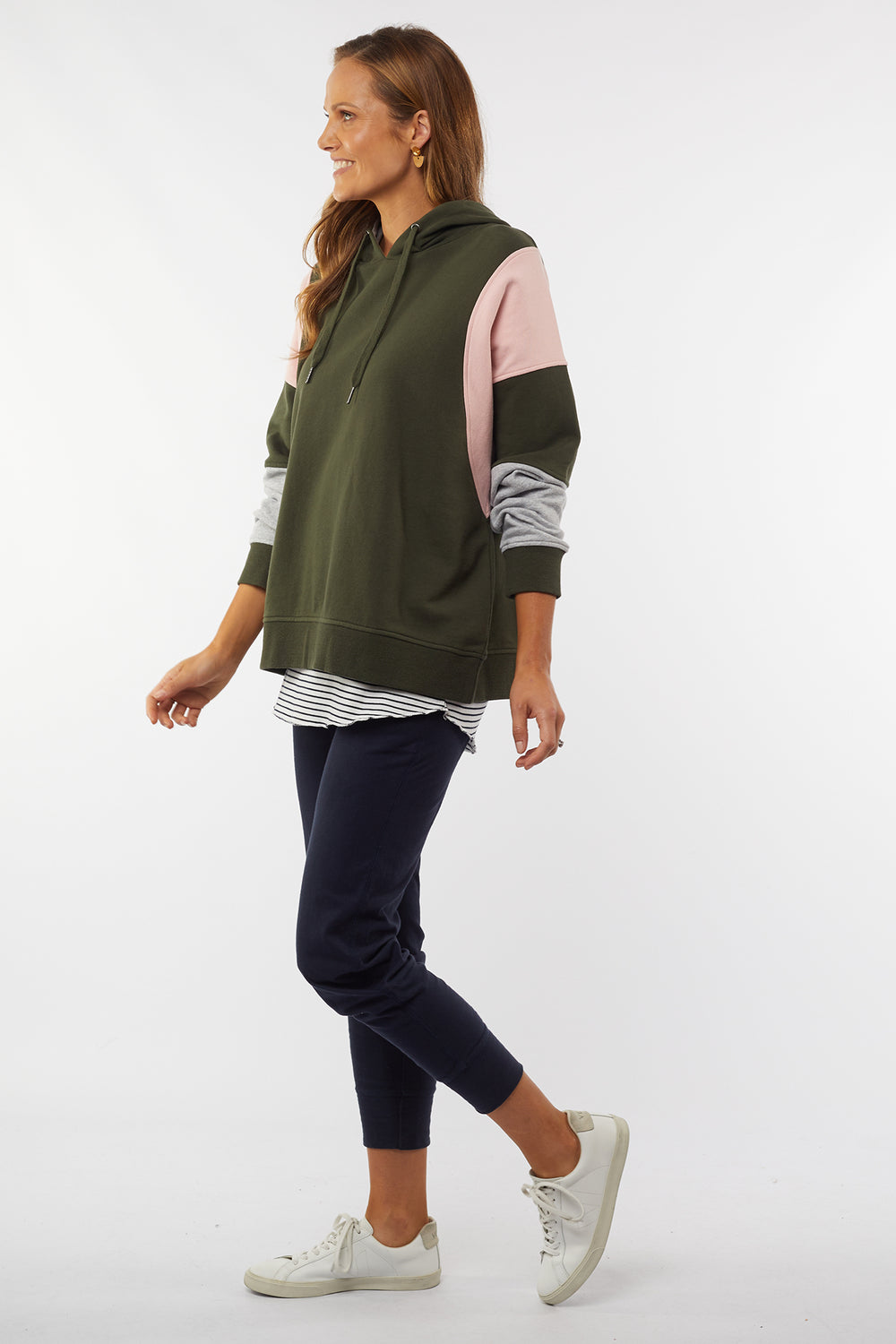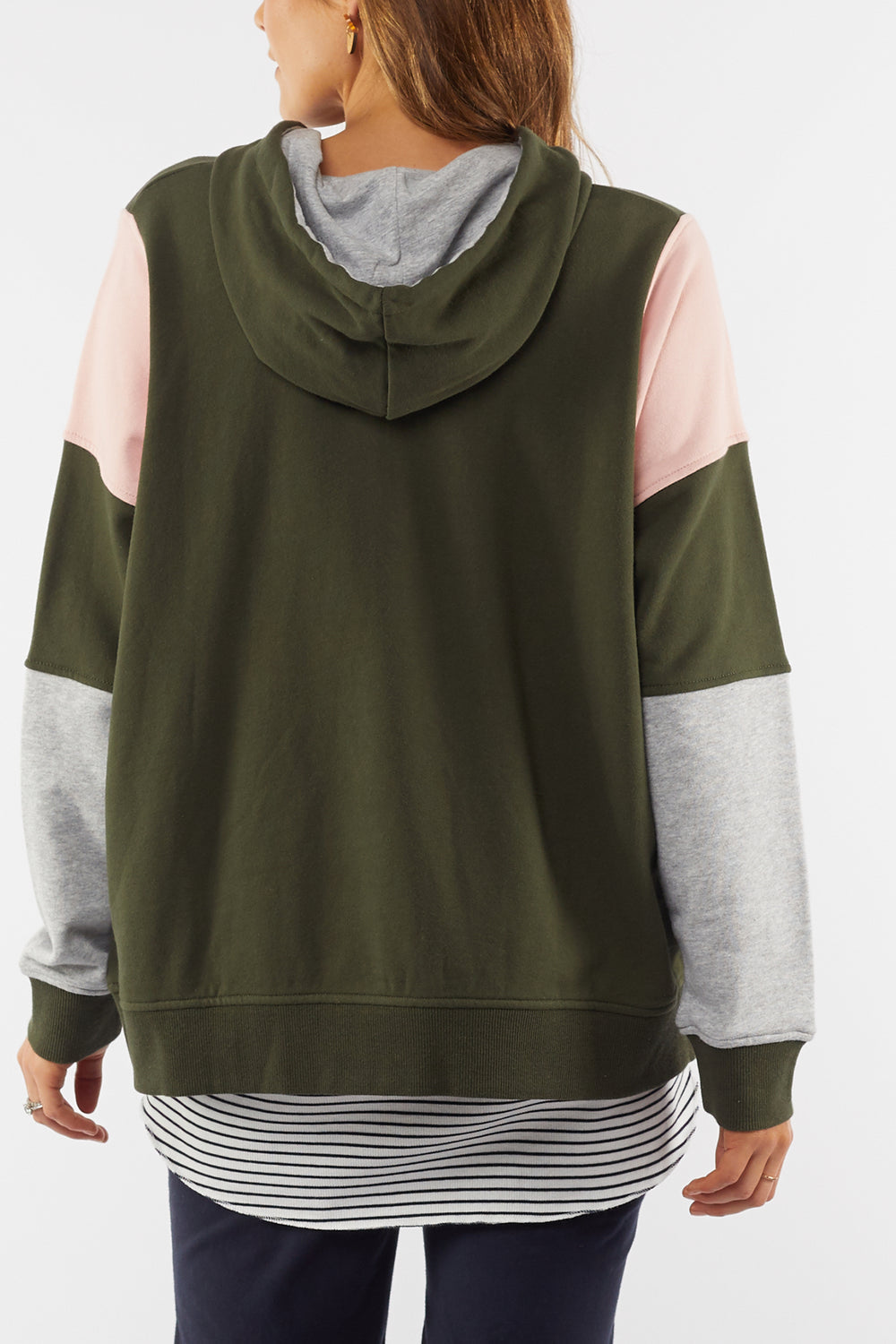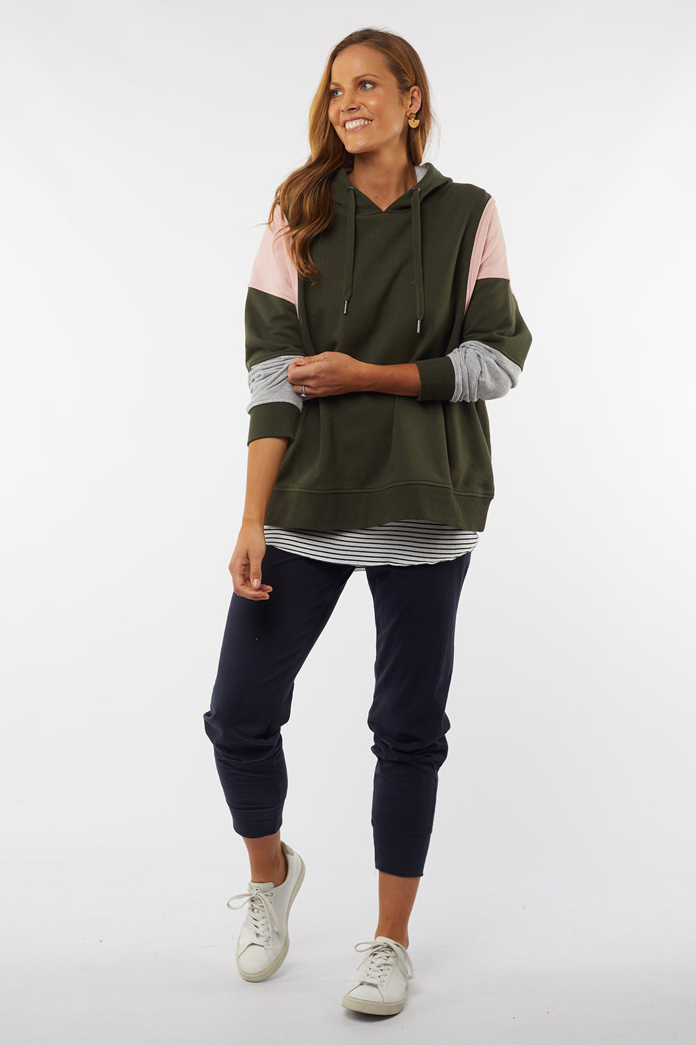 The Amelia Panel Hoody is made from cotton fleece. The contrast panels on the sleeves gives this hoody a sporty feel. Wear back with your favourite fundamental trackies for a comfy outfit.