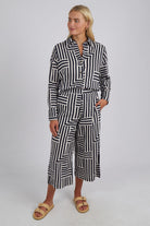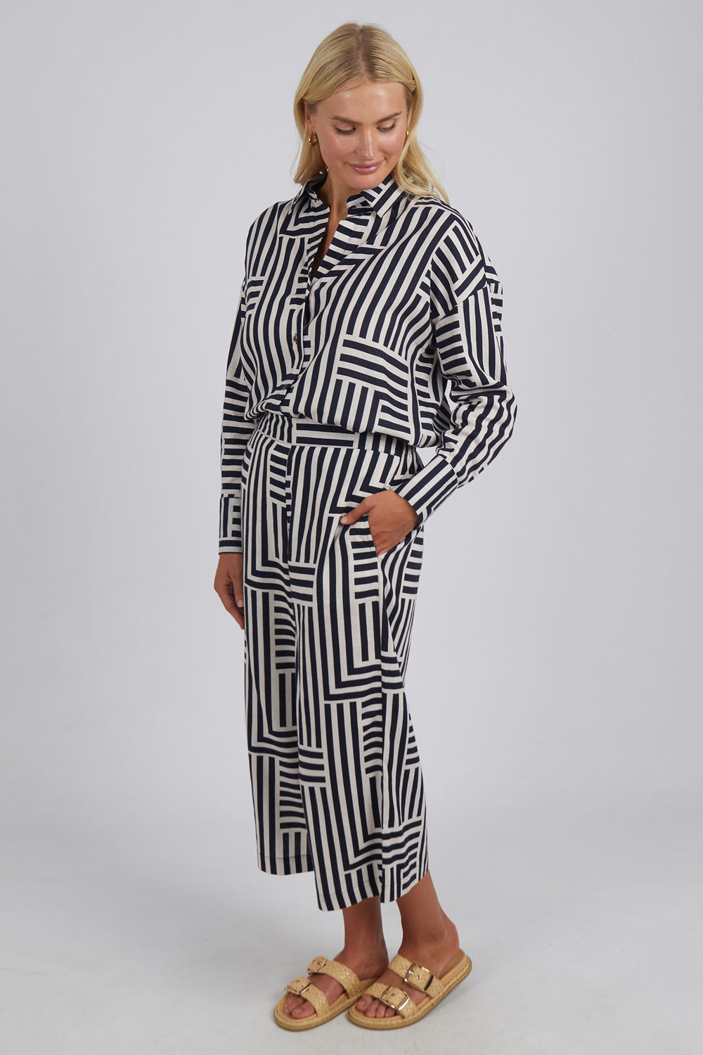Don't sacrifice style for comfort with the gorgeous Bauhaus Pants. Featuring a striking linear print in classic navy and oatmeal, these beautiful linen lyocell blend pants feature a comfortable elastic waist and will look great with any outfit especially paired back with the Bauhaus Shirt.