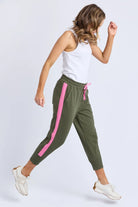 Say hello to the brunch pant - side tape, best selling style, herringbone tape along side seams, and elastic waistband with adjustable tie. Style it your way for an effortless look that works for any day of the week.