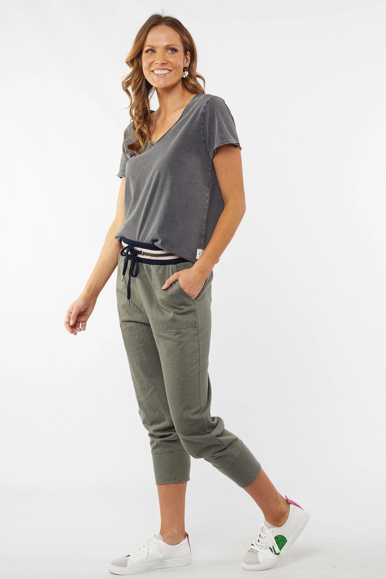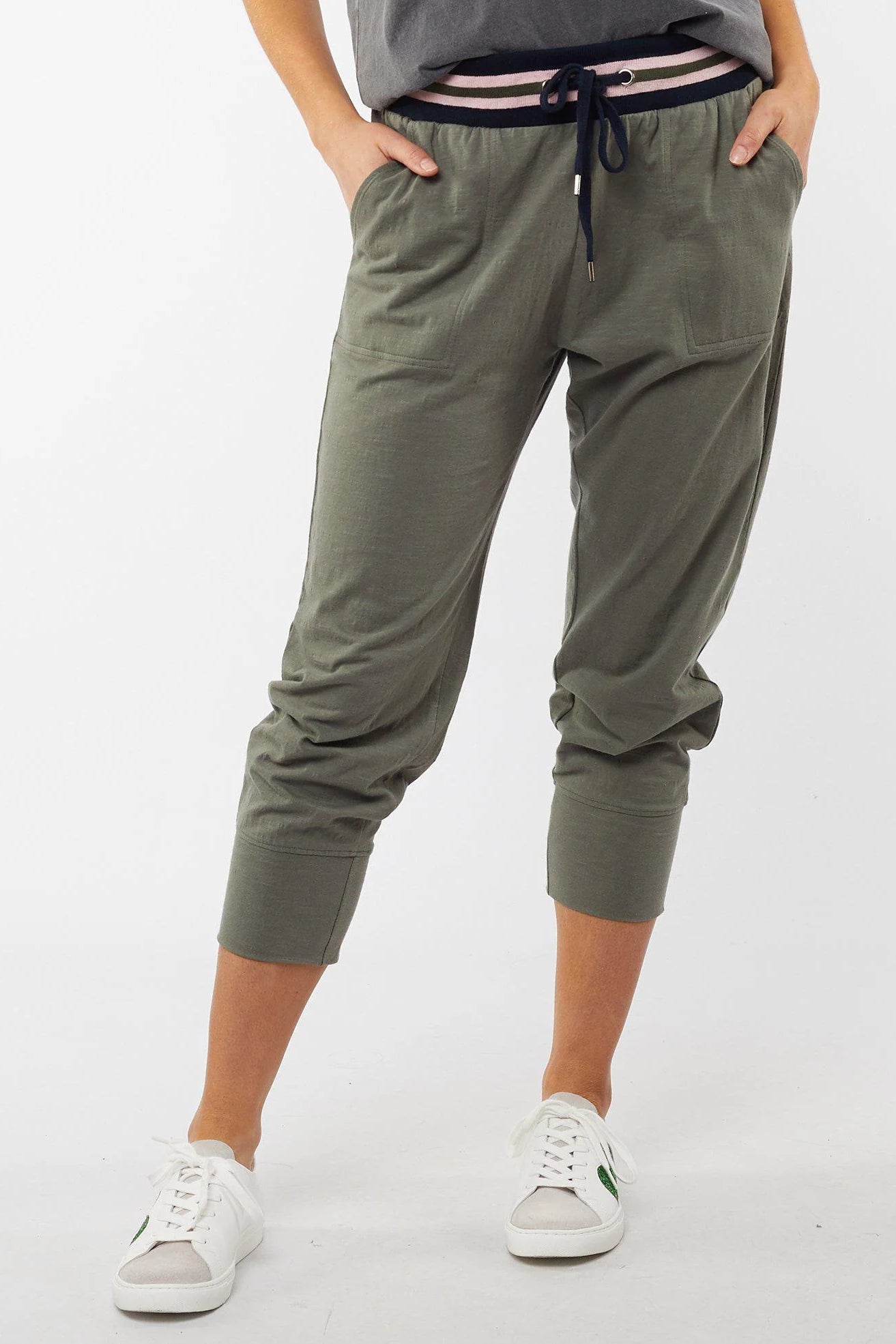 The Just Peachy Lounge Pant from Elm Lifestyle, is a lounge pant with a cute twist to the usual lounge pant. Made from a cotton slub jersey, these stylish pants feature a rib waistband in a complementary stripe design, with a drawstring in the elastic for added comfort.