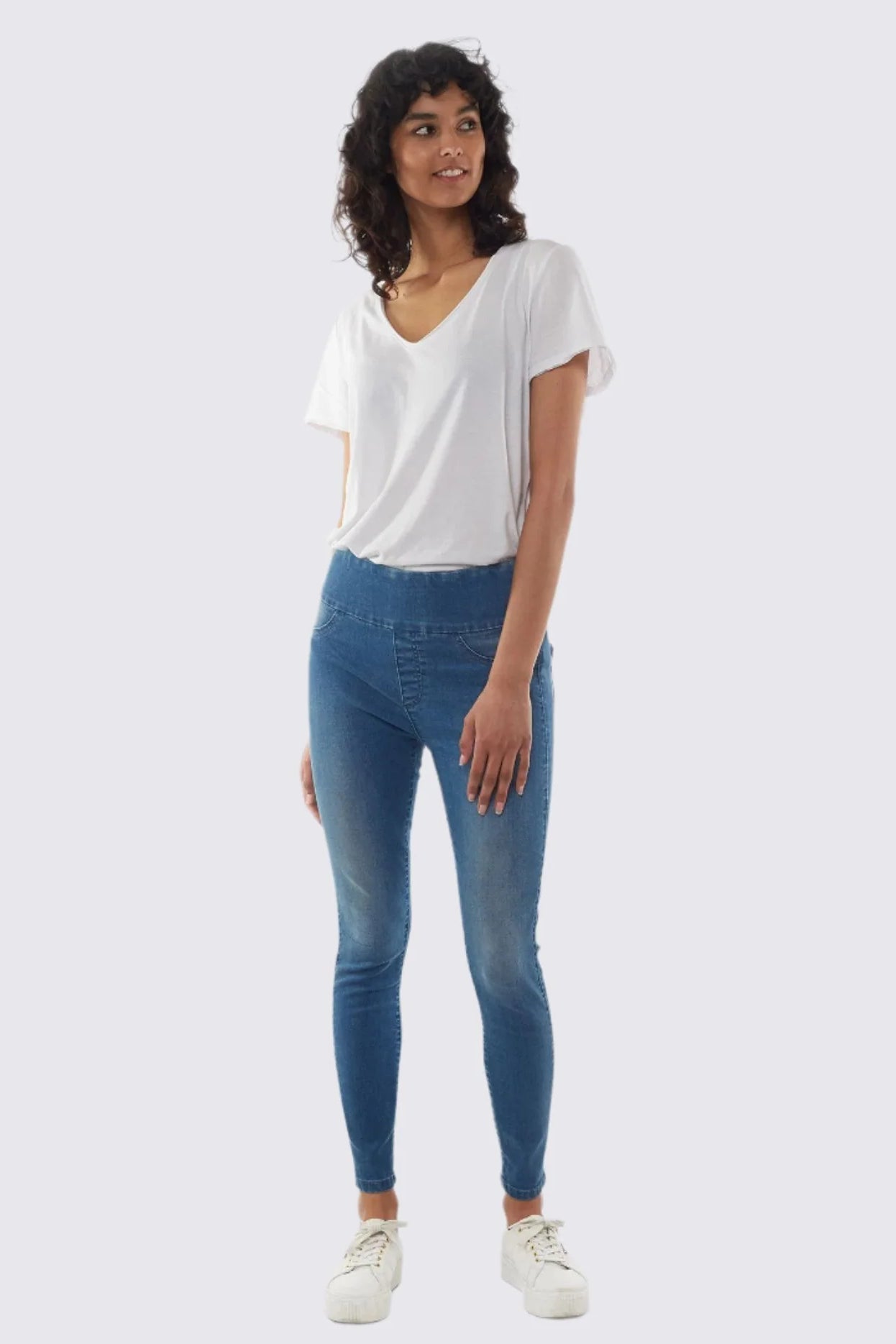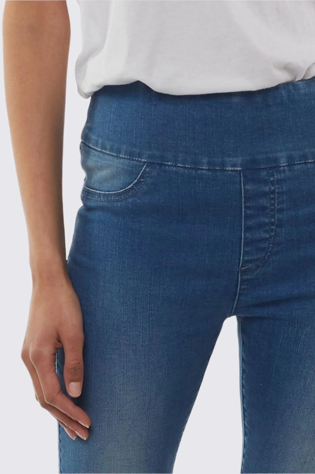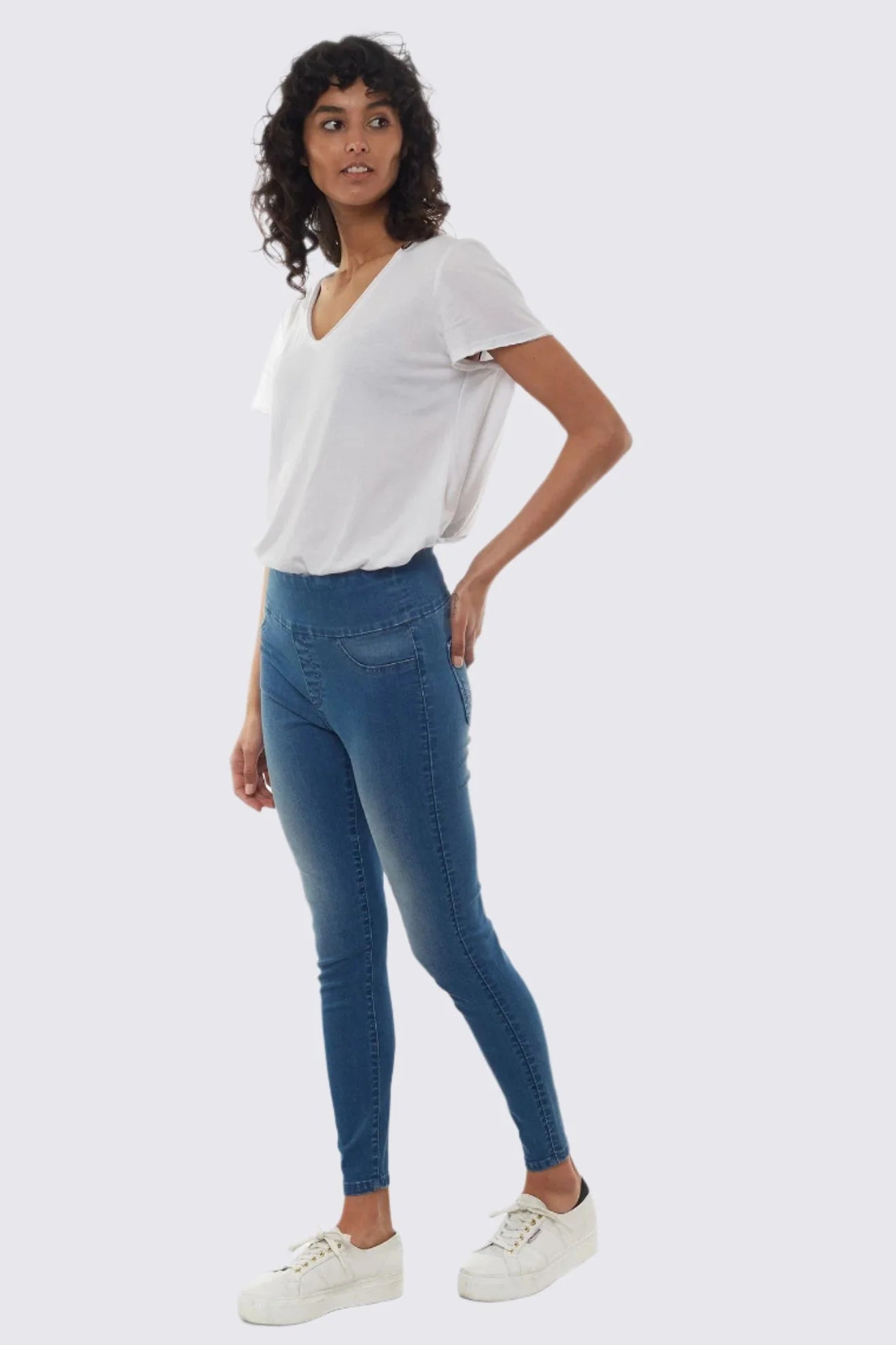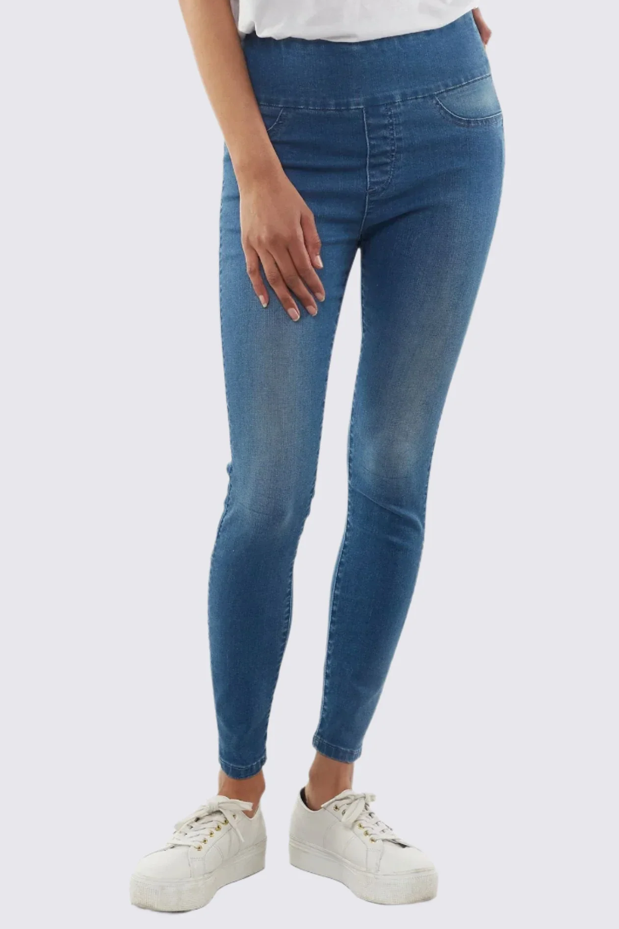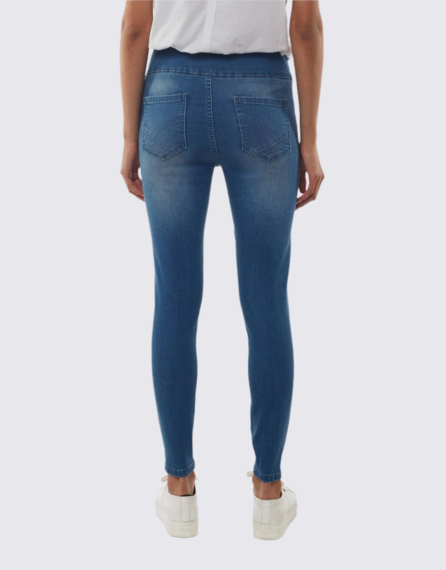 Constructed with stretch denim, these jeggings are equipped with a self-fabric waistband. This means they pull onto your body seamlessly to give you the comfiest fit - no rigid belts or DIY sewn-in waistbands here.