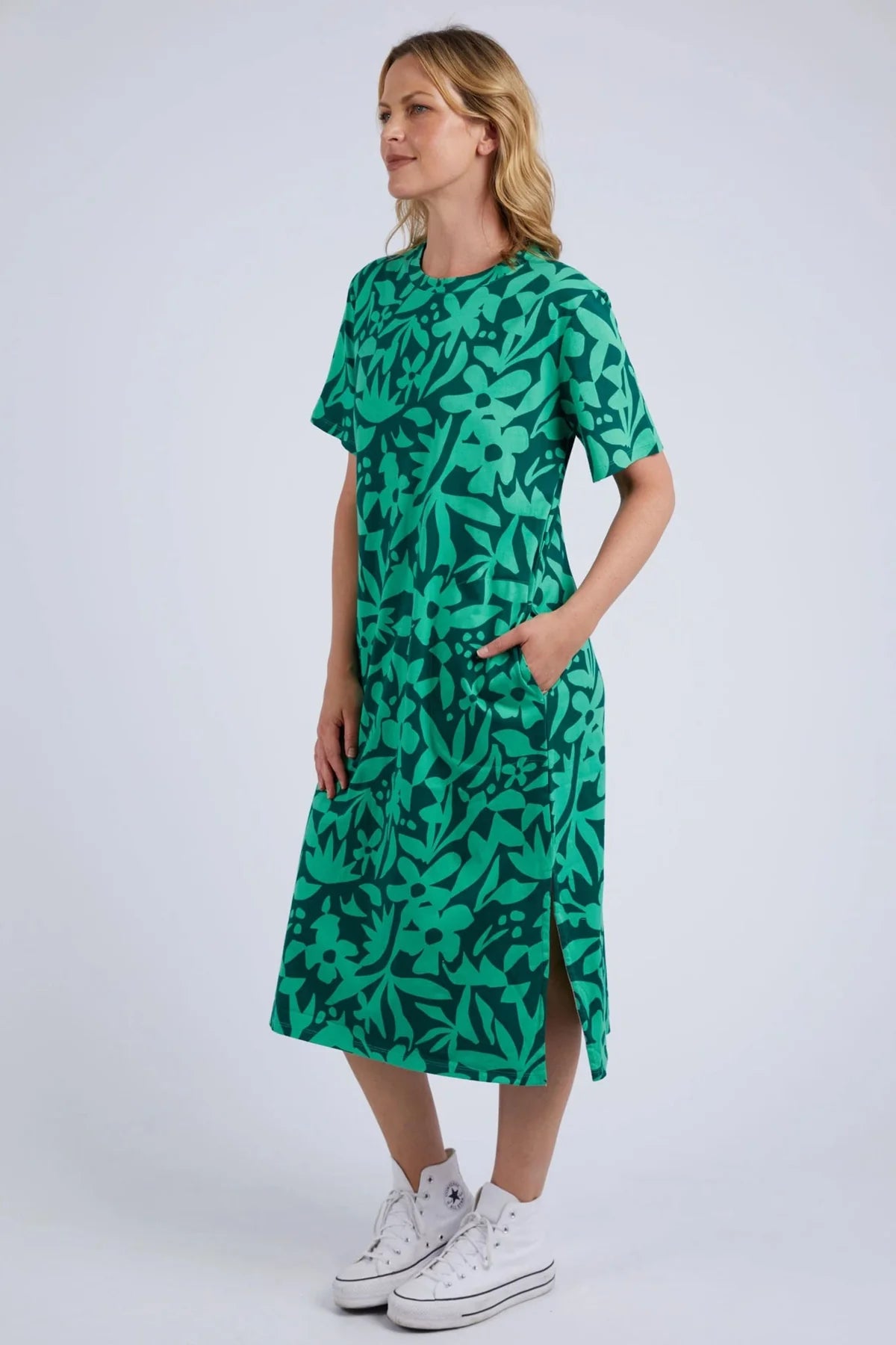 A simple Tee dress is a Summer essential and this new season style from Elm is a gorgeous choice for the upcoming season! Available in two colourways, this comfortable midi features an all-over stencil floral print with a straight fit through the body and classic crew neckline. Pair with your go-to sneakers for an easy weekend look.