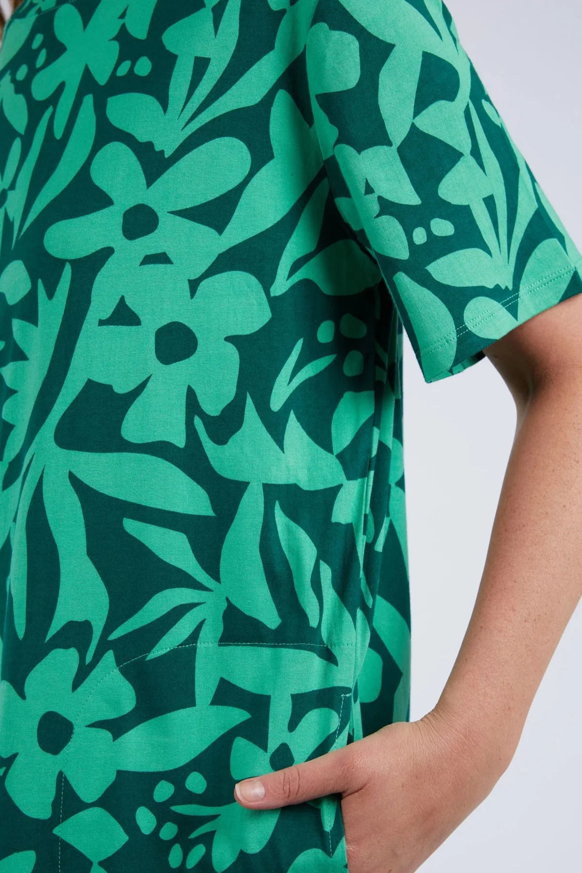 Stencil Foral Tee Dress in Green Briar