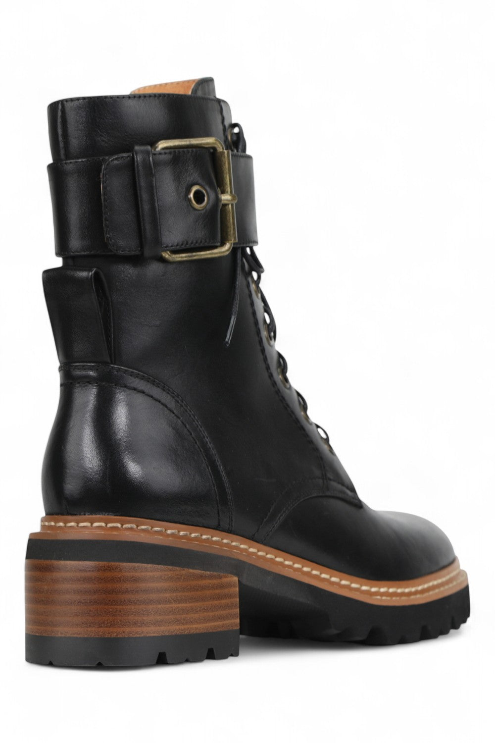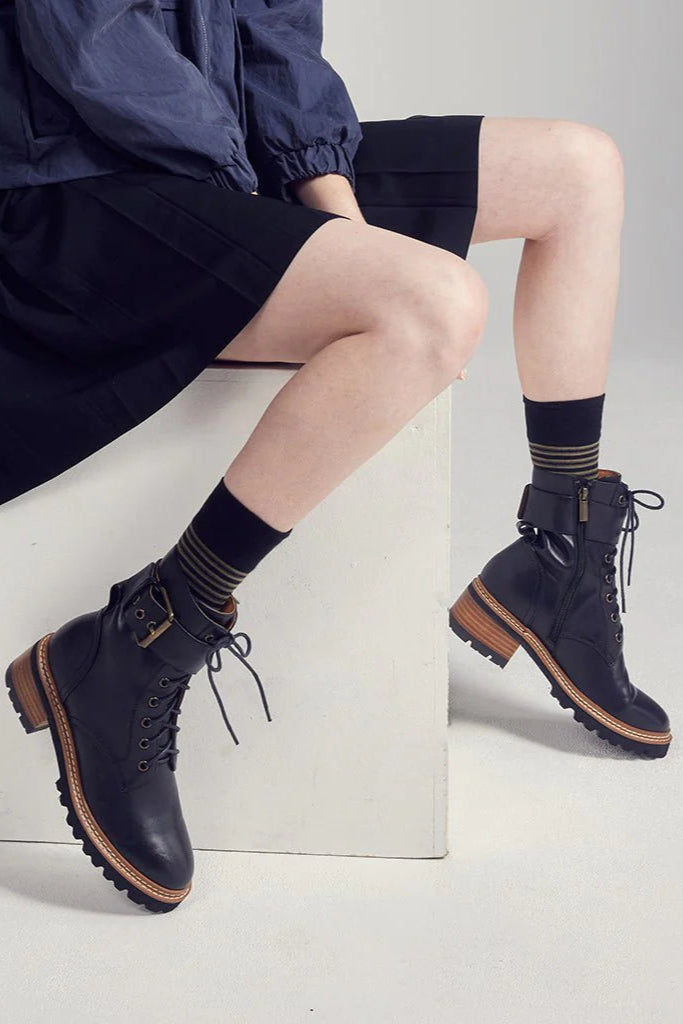 New construction alert, EOS' new line up for W23 welcomes the Line Construction. Inspired by 'Lineman boots' that help linemen and other pole climbers keep their feet safe and in control as they work high up' , the Line boots cleverly mix utilitarian and trend, made for a hardcore winter or a trans-seasonal wardrobe hero. It is made from soft Cashmere leather with pull tabs at the heel, full inner zip, lace-up front, large featured buckle and teamed with feather light treaded rubber outsoles. Also Available in Brandy.
