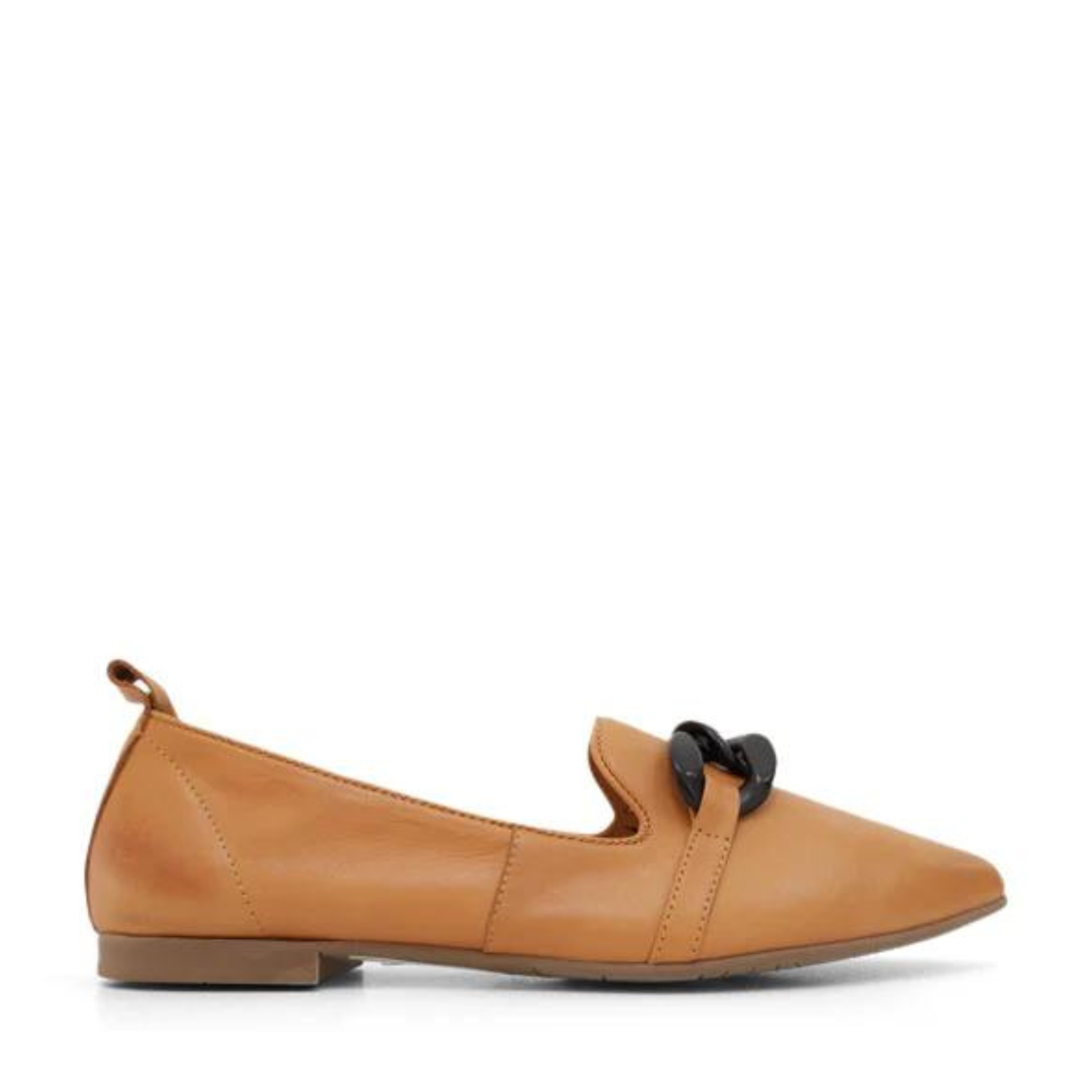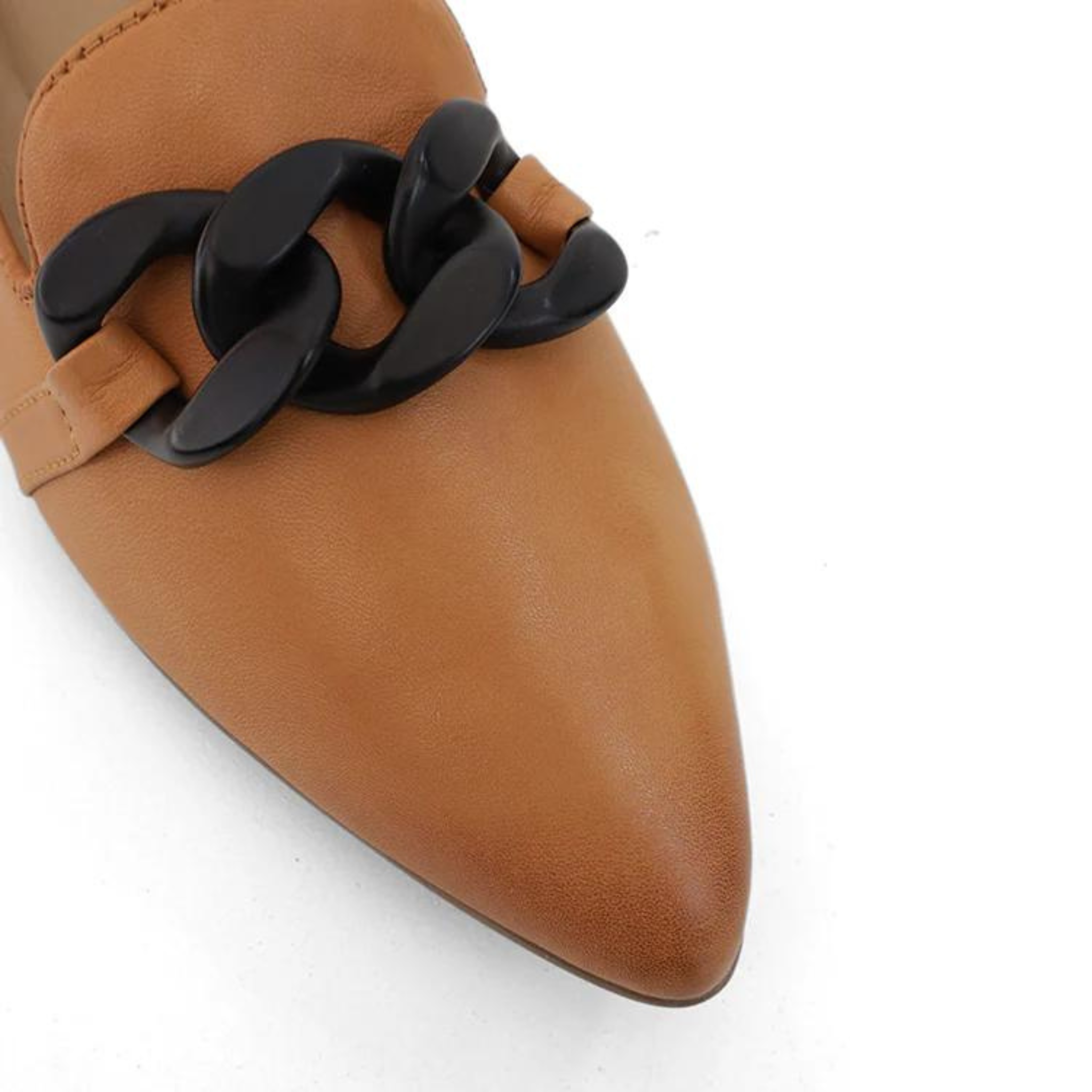 A super soft slipper construction, perfect for all day wear. A statement chain detail on the vamp. You will love baker.