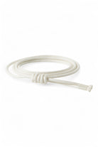 A refined utilitarian accent, this belt is crafted from tactile rope and finished with hand-tied knots at each end. Designed for versatility, it features dipped tips for a clean, modern finish and can be styled loose or cinched to define the waist. A minimal yet distinctive accessory that adds quiet structure to soft silhouettes.