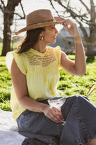 Flirty and feminine with all the details you'll love, meet the Adelyn Cotton Top from Foxwood. The round neckline with delicate lace stand collar, intricate lace and gathering throughout the upper bodice and short cap frill sleeves adds a touch of whimsy and charm. Pair it with light-wash denim or a maxi skirt for an effortlessly bohemian look. This blouse makes an elegant statement without trying too hard.