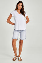 Looking for a simple everyday top? Well the Elements Manly Vee Tee from Foxwood is just what you need! This versatile tee features a ribbed v-neckline, short sleeves with rolled cuffs and a curved hemline. This tee is perfect for pairing with any of your jeans, pants, and skirts for an easy and casual everyday look.