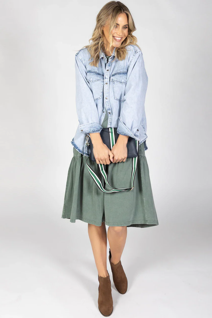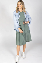 The Poppy Dress by Foxwood is going to be your comfy casual go to this season. Featuring elbow length sleeves and a swing style tiered skirt, it drops straight from the bust for maximum comfort with added style. Pair with your ankle boots or sneakers.
