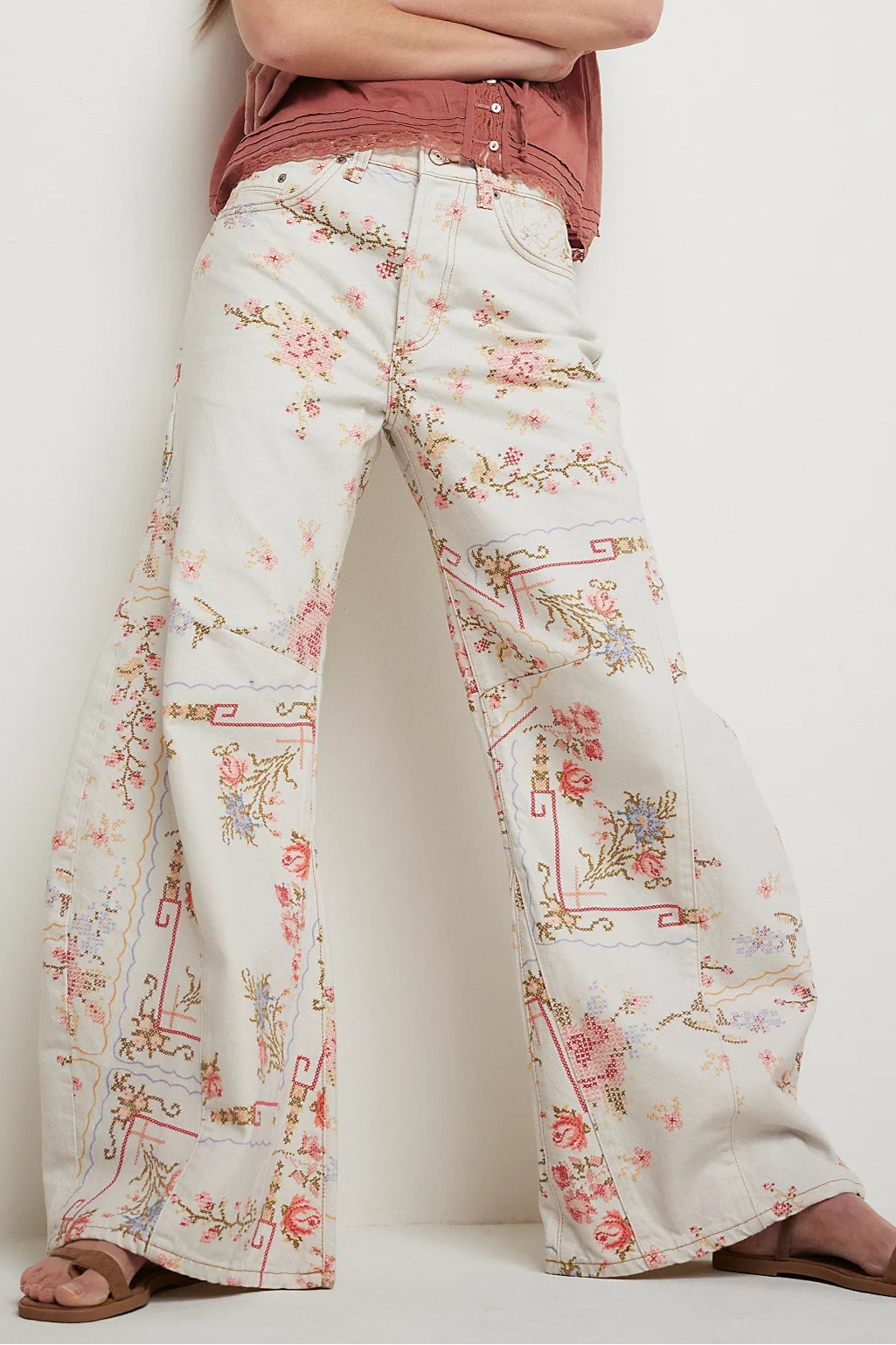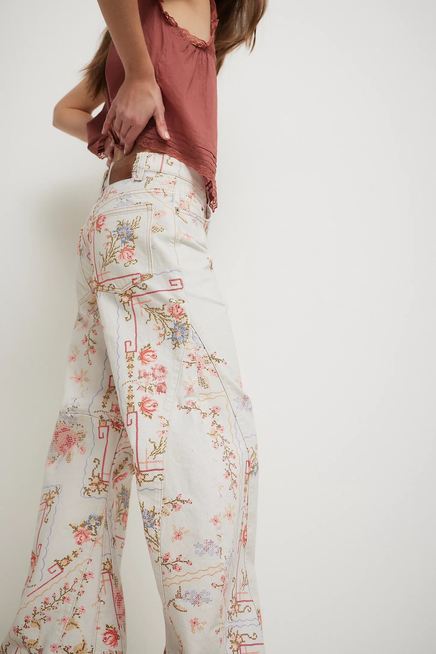 Eden Printed High Slouchy Jeans | Ivory Combo Cross Stitch