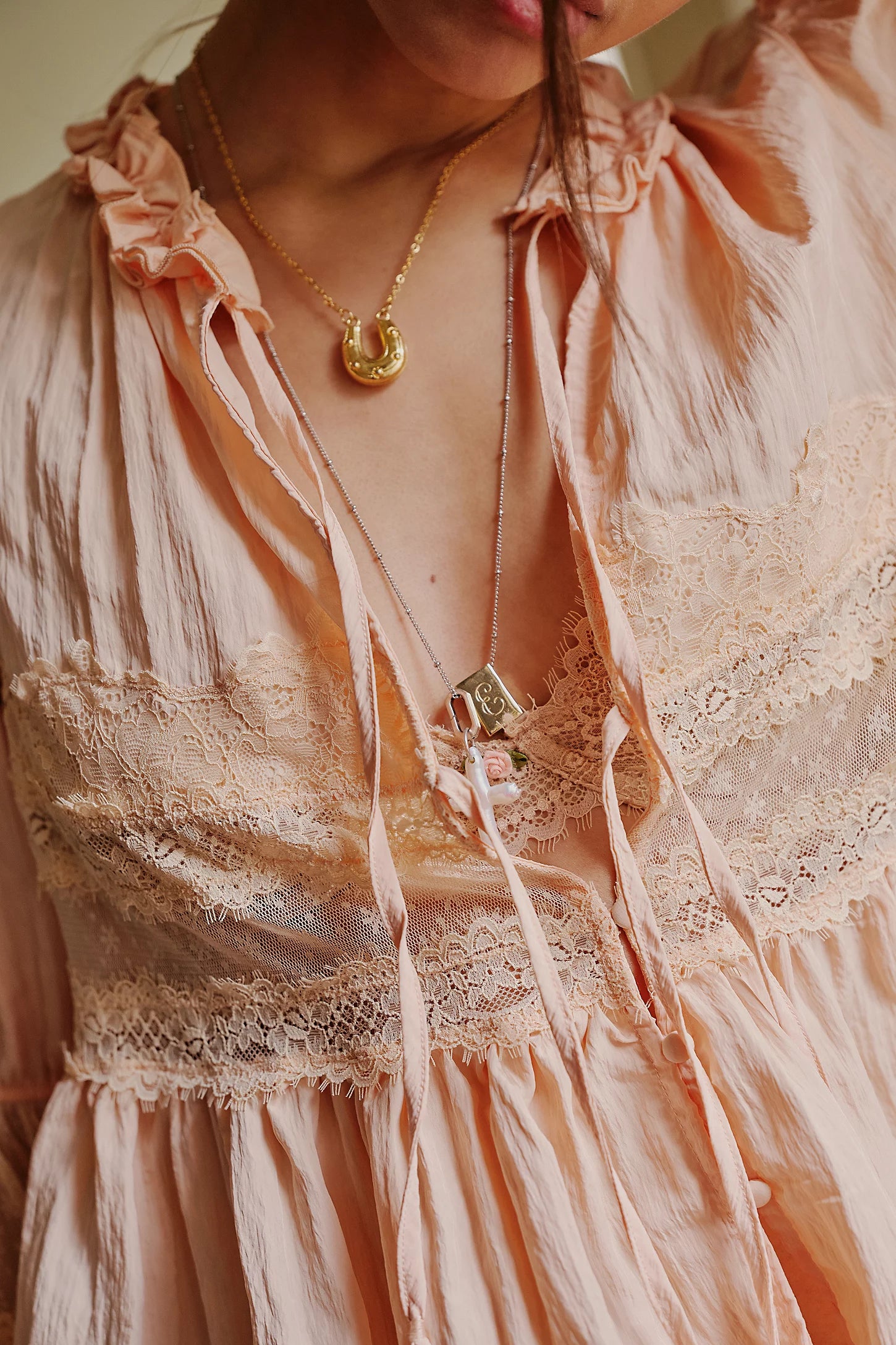 - Soft fabrication with sheer lace trim
