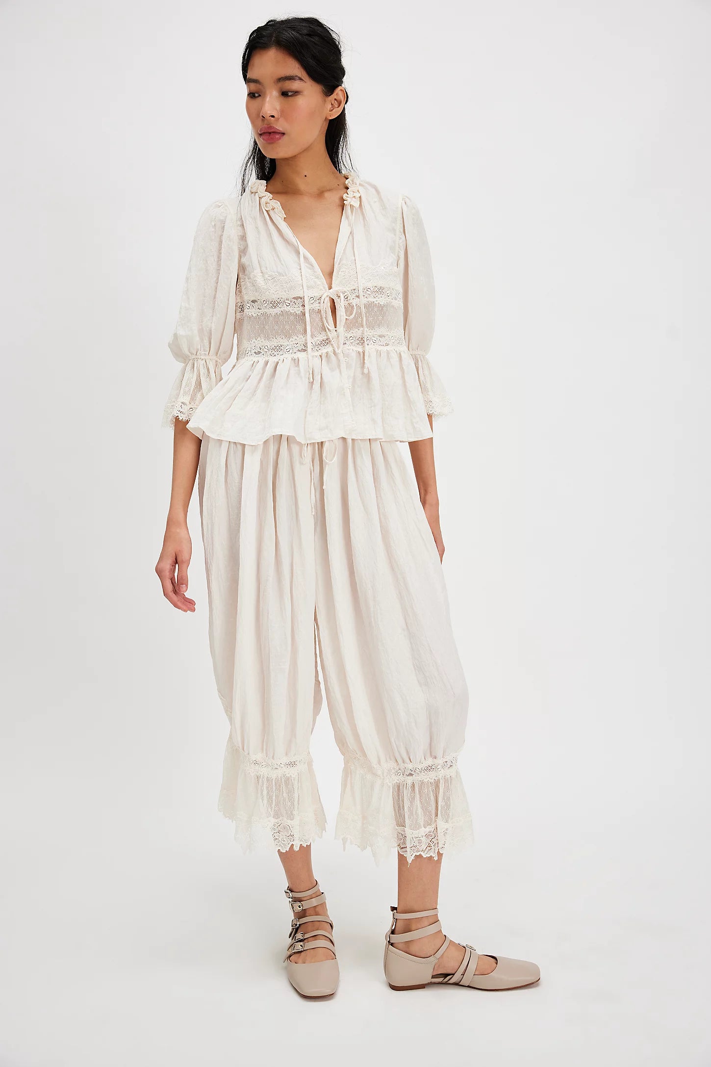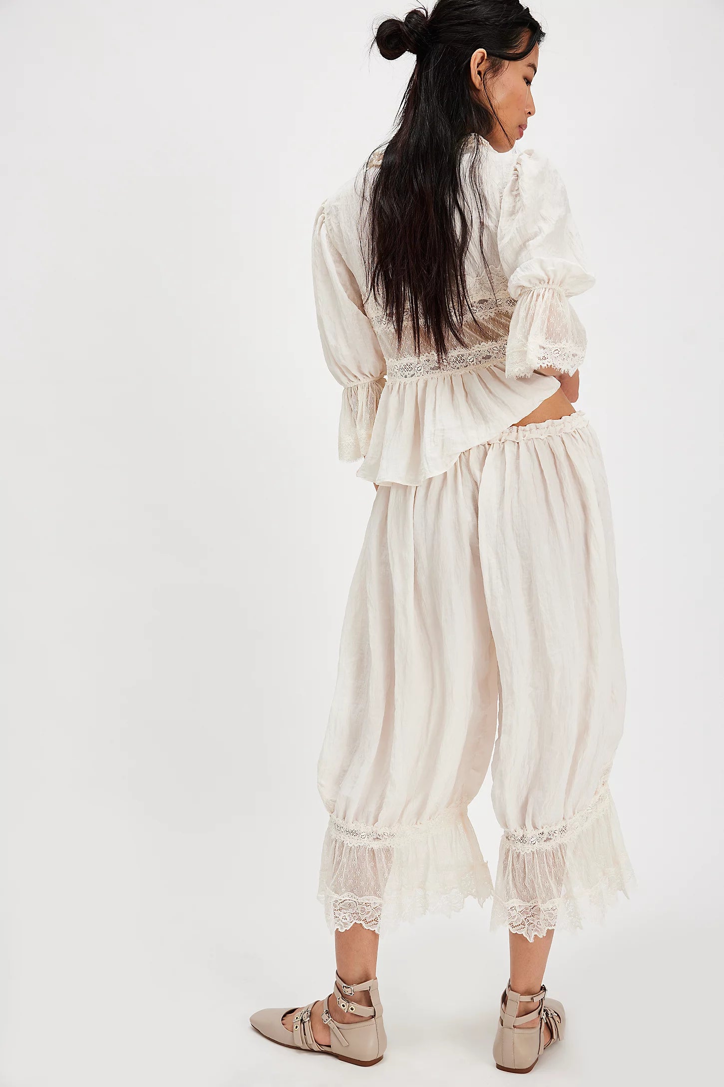 - Puffy ¾ sleeves with elasticated cuff and flared hems