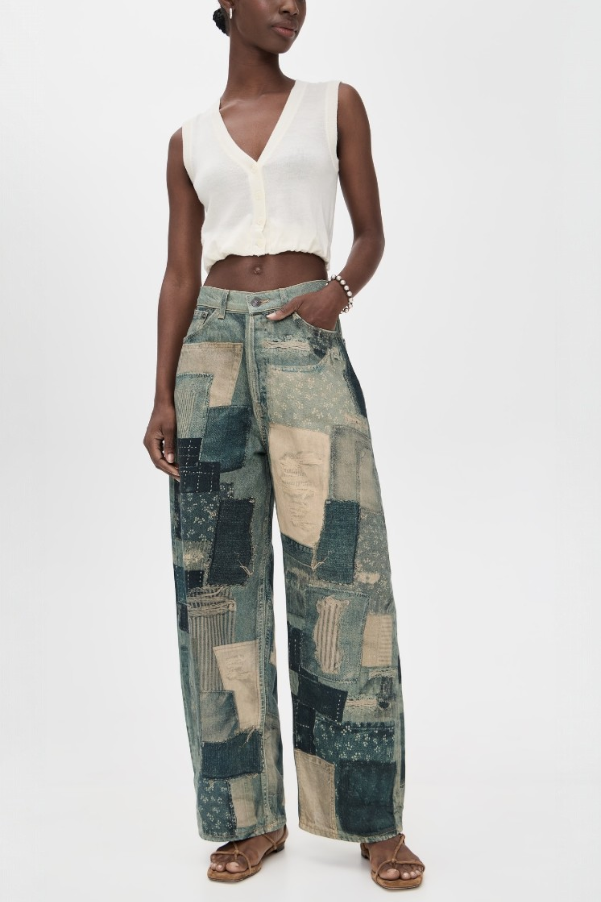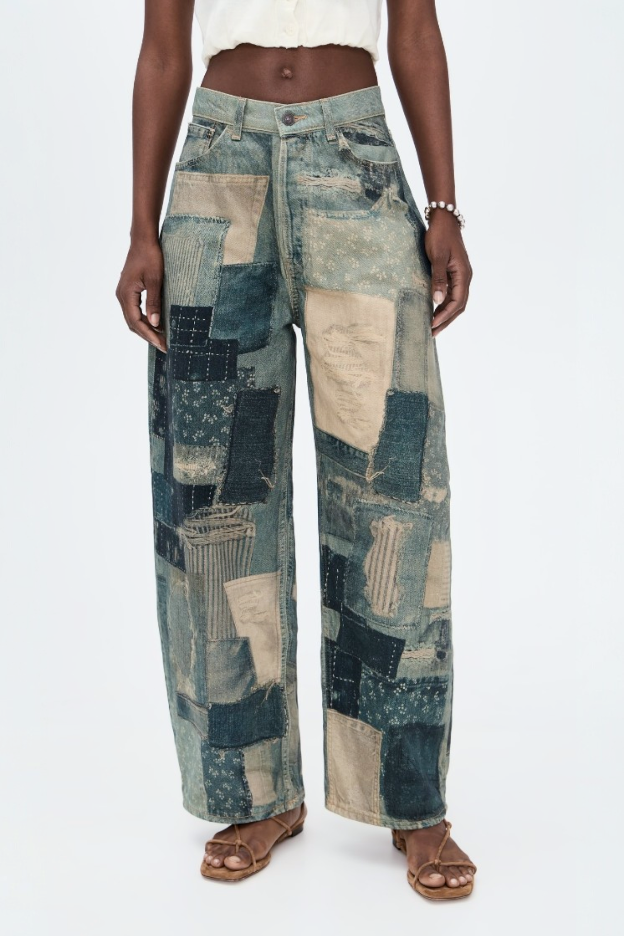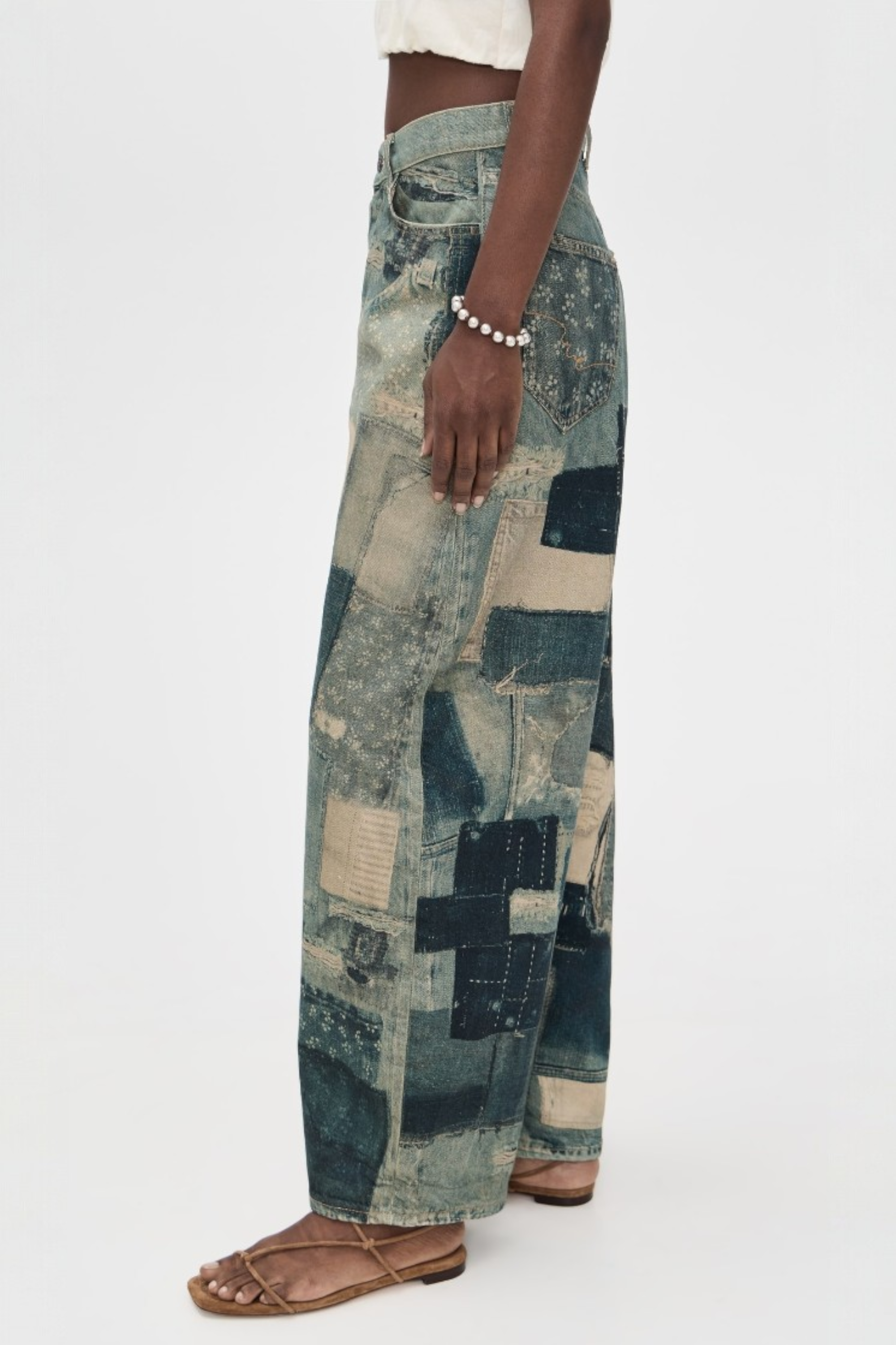 A new take on patchwork from our collection. These jeans feature a one-of-a-kind digitally printed design made to mimic patchwork and distressing. Each Piece is UniqueDue to the one-of-a-kind nature of this product, each piece is unique and will vary slightly from the image.