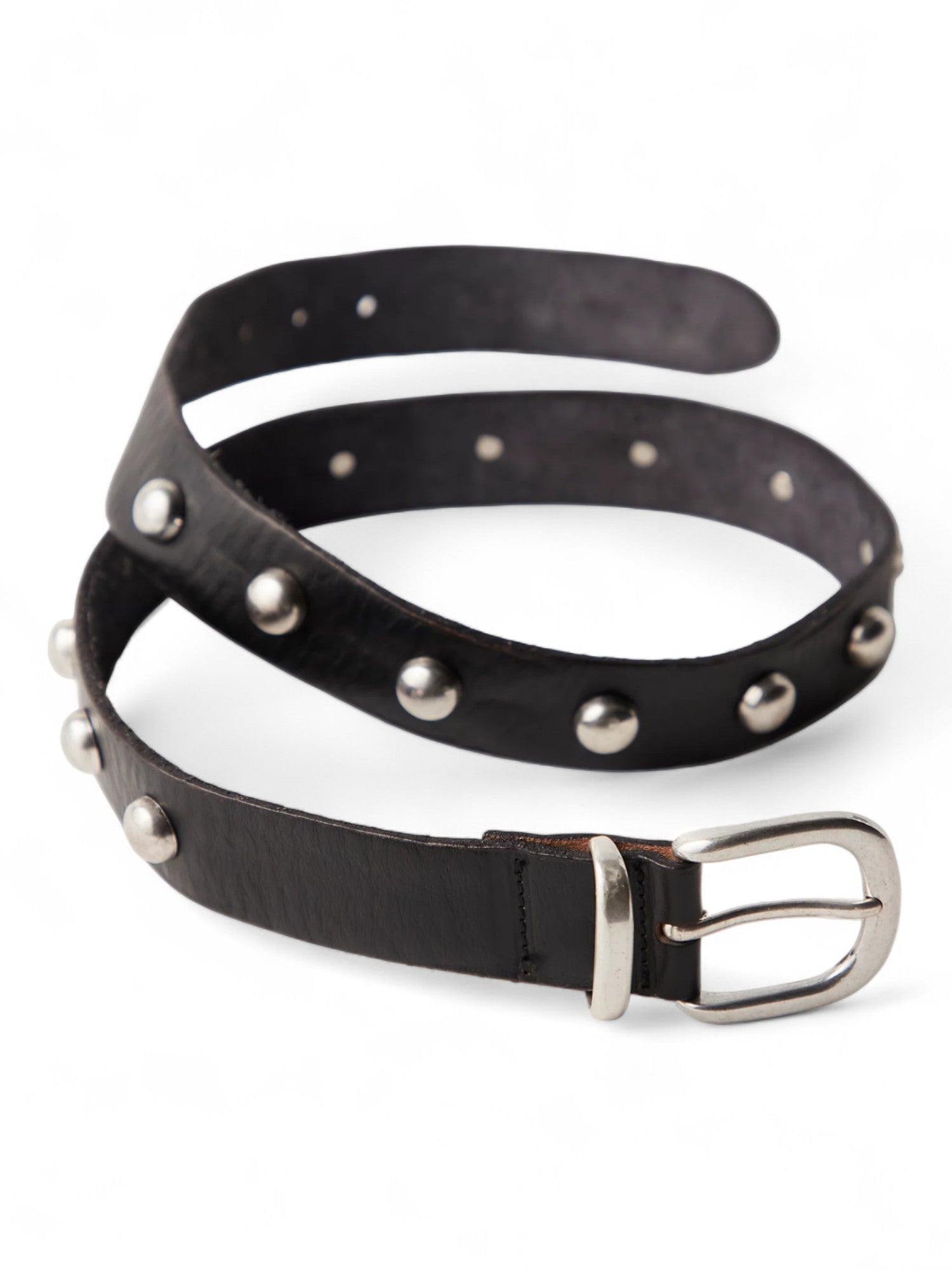 An elevated take on a classic silhouette, this belt features a soft leather fabrication and chunky studded detailing with an adjustable buckle closure. This studded belt adds something eye-catching to every outfit. Due to the natural characteristics of the leather, each piece will have a variation of grain and texture.