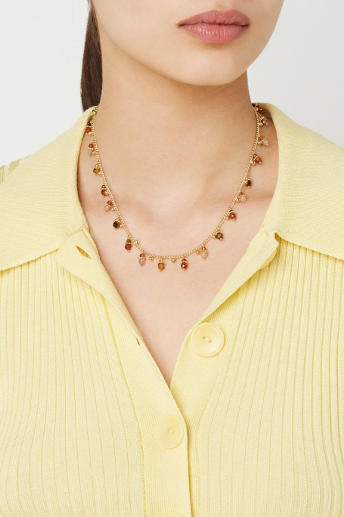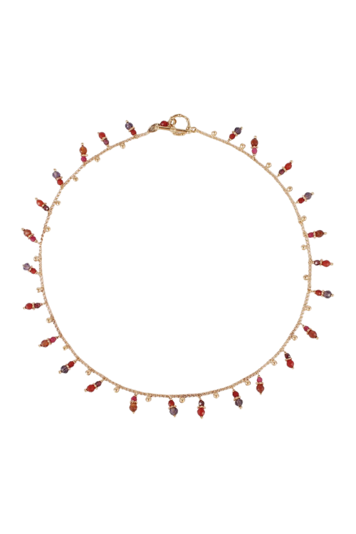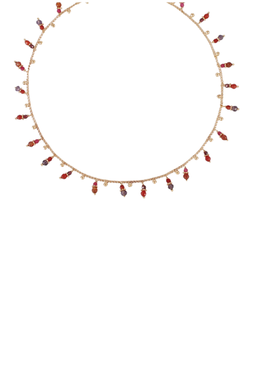 This Gas Tangerine Serti Necklace is an exquisite piece of luxury jewellery crafted to perfection. Expertly plated in precious gold, the necklace is radiantly festooned with luminous coloured gemstones, providing its wearer with a glamorous and sophisticated look.