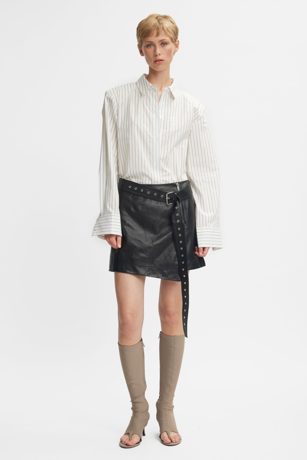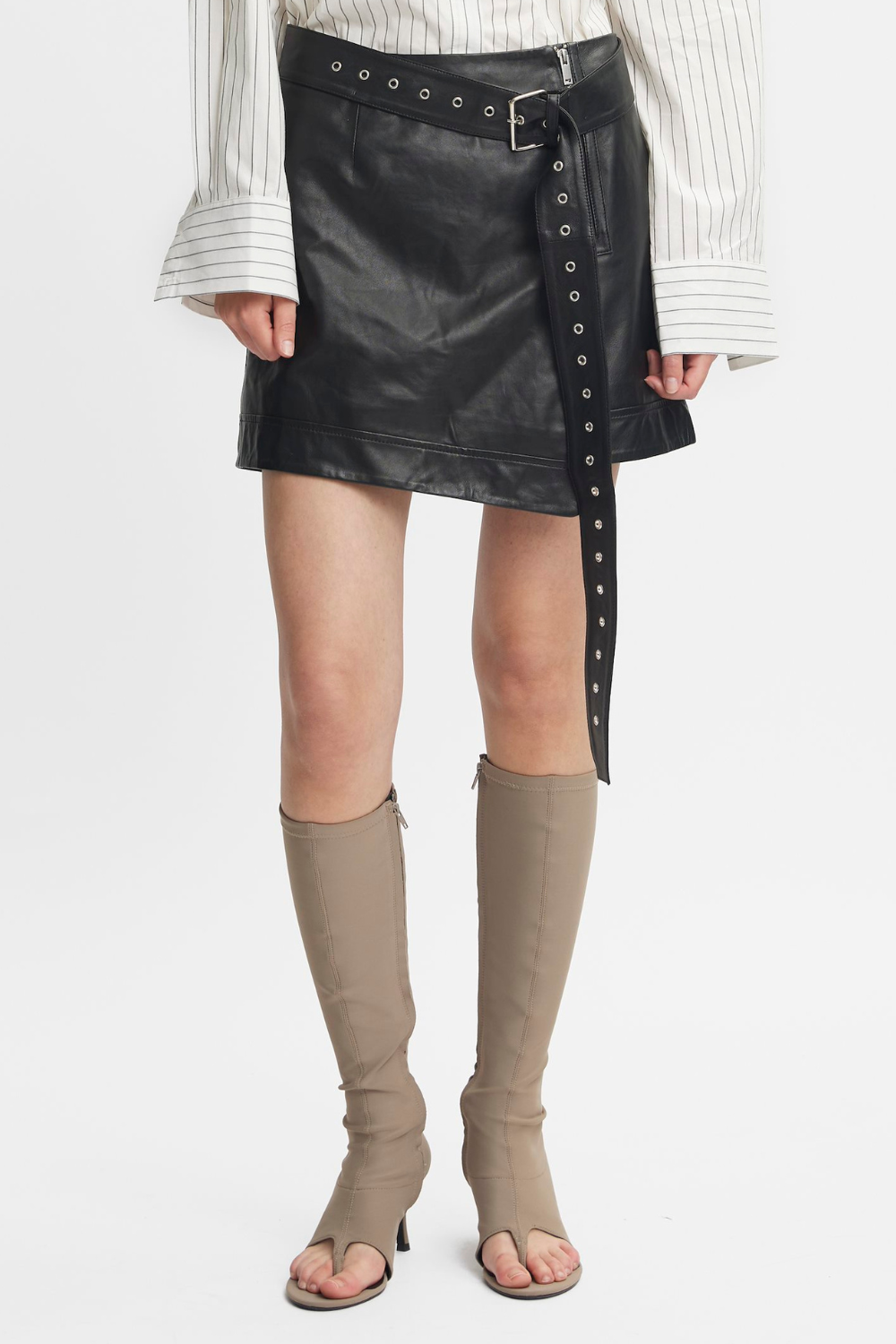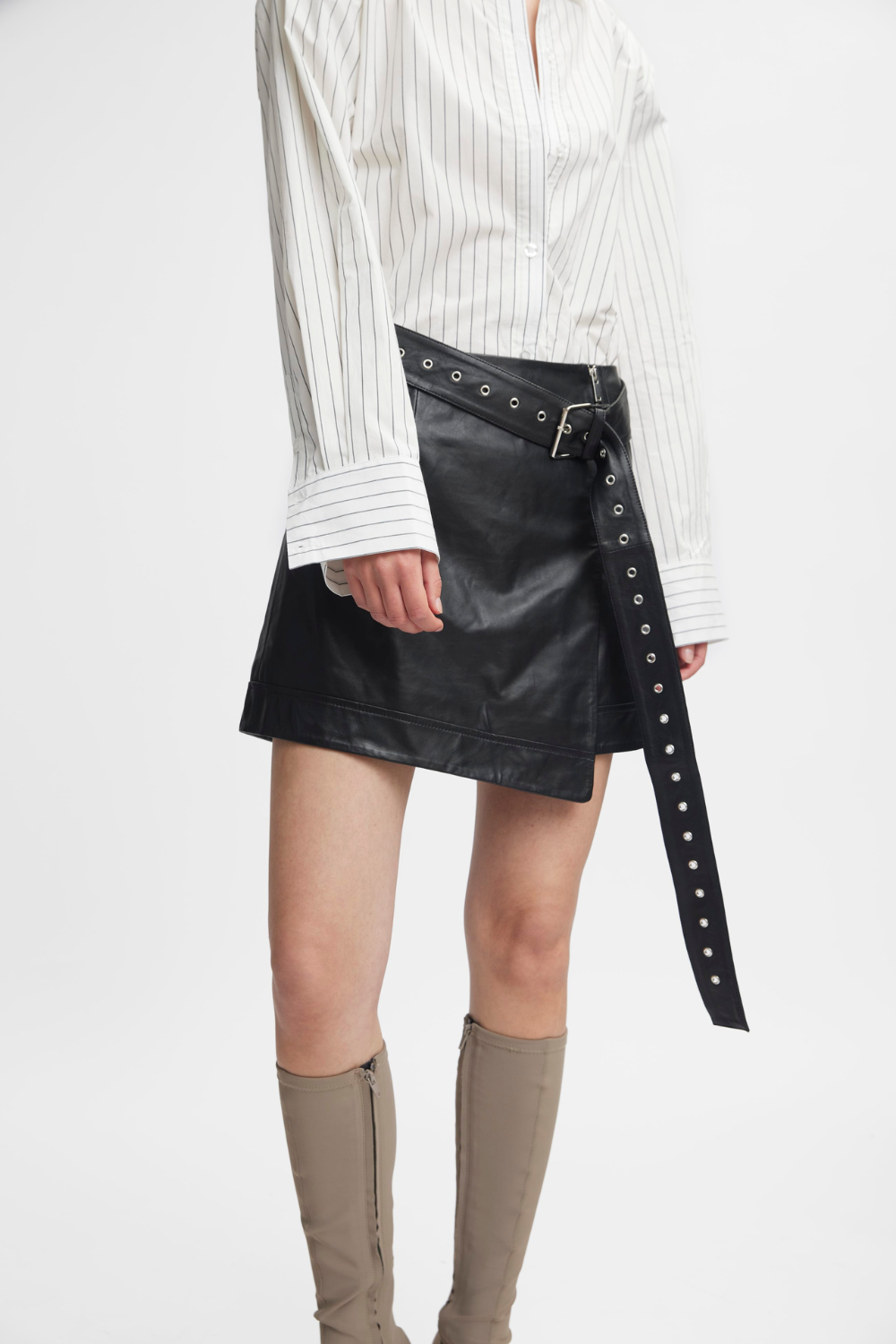 Cool leather skirt from Gestuz! AmidaGZ MW skirt is an A-shaped leather skirt in 100% lambskin. The skirt has an asymmetrical cut in the front, with a zip and a leather belt that comes with it. The skirt can be combined with high boots and a nice top to create a great party outfit, or wear it with a nice knitted sweater and sneakers, for a more everyday look. Amida leather skirt is a great addition to your basic wardrobe, which you will enjoy for a long time!