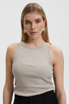 Gestuz ramps up wardrobe essentials with this high neck, sleeveless top. In a stylish cut with a high neck and back, and thin shoulder straps. Made of a responsible blend of Better Cotton. Ideal for layering and easy to mix and match. Also Available in Malibu Blue, Bright White and Black.