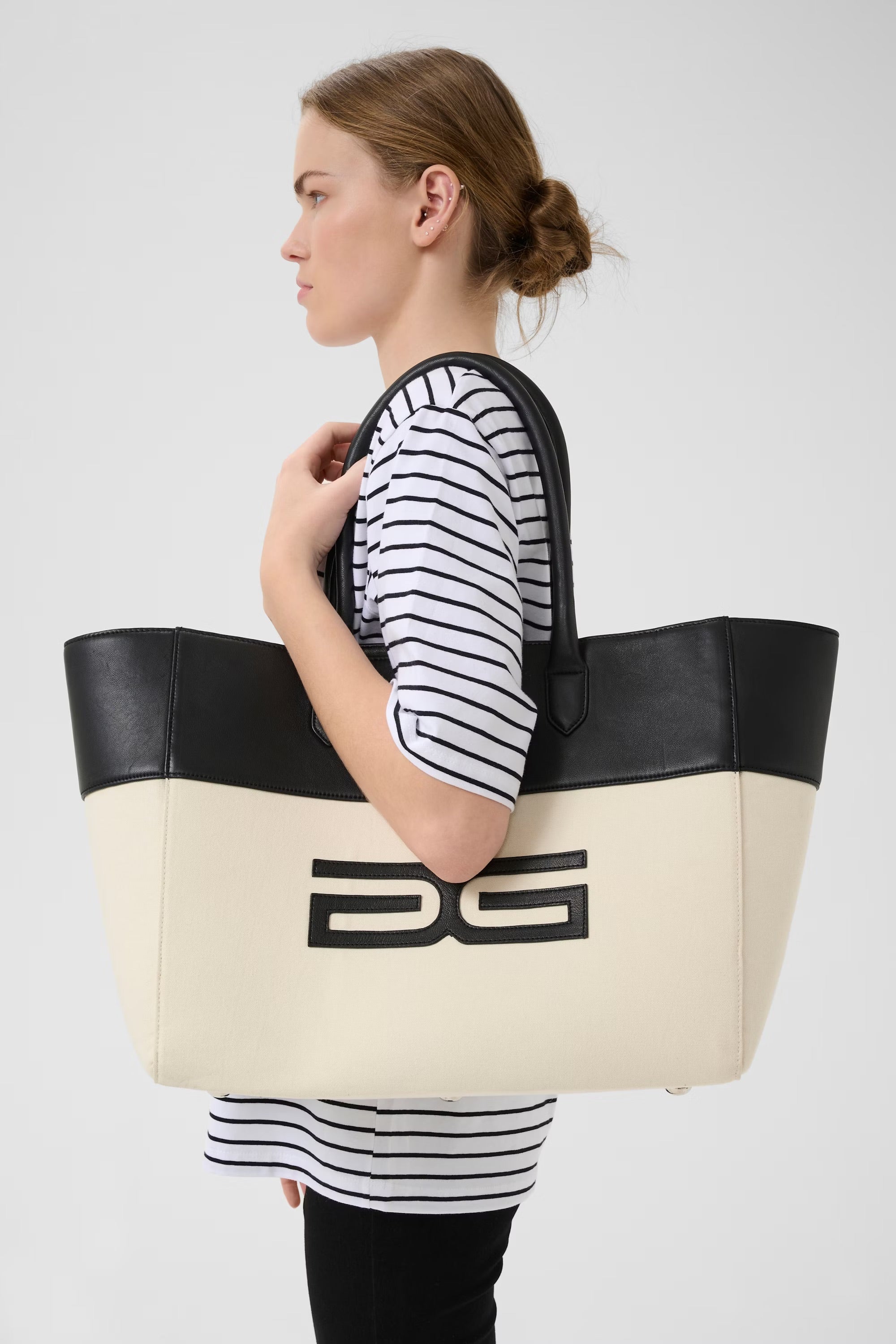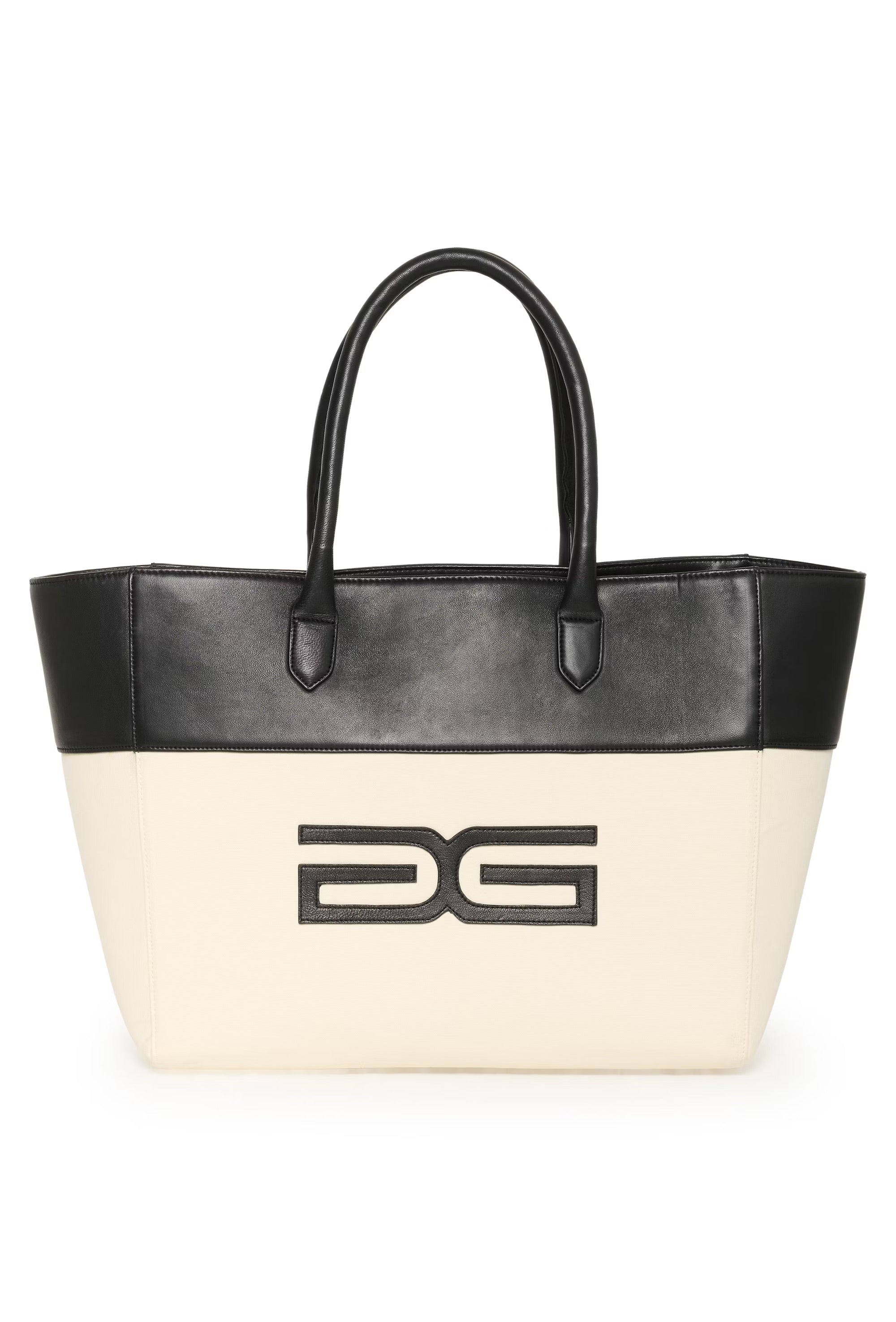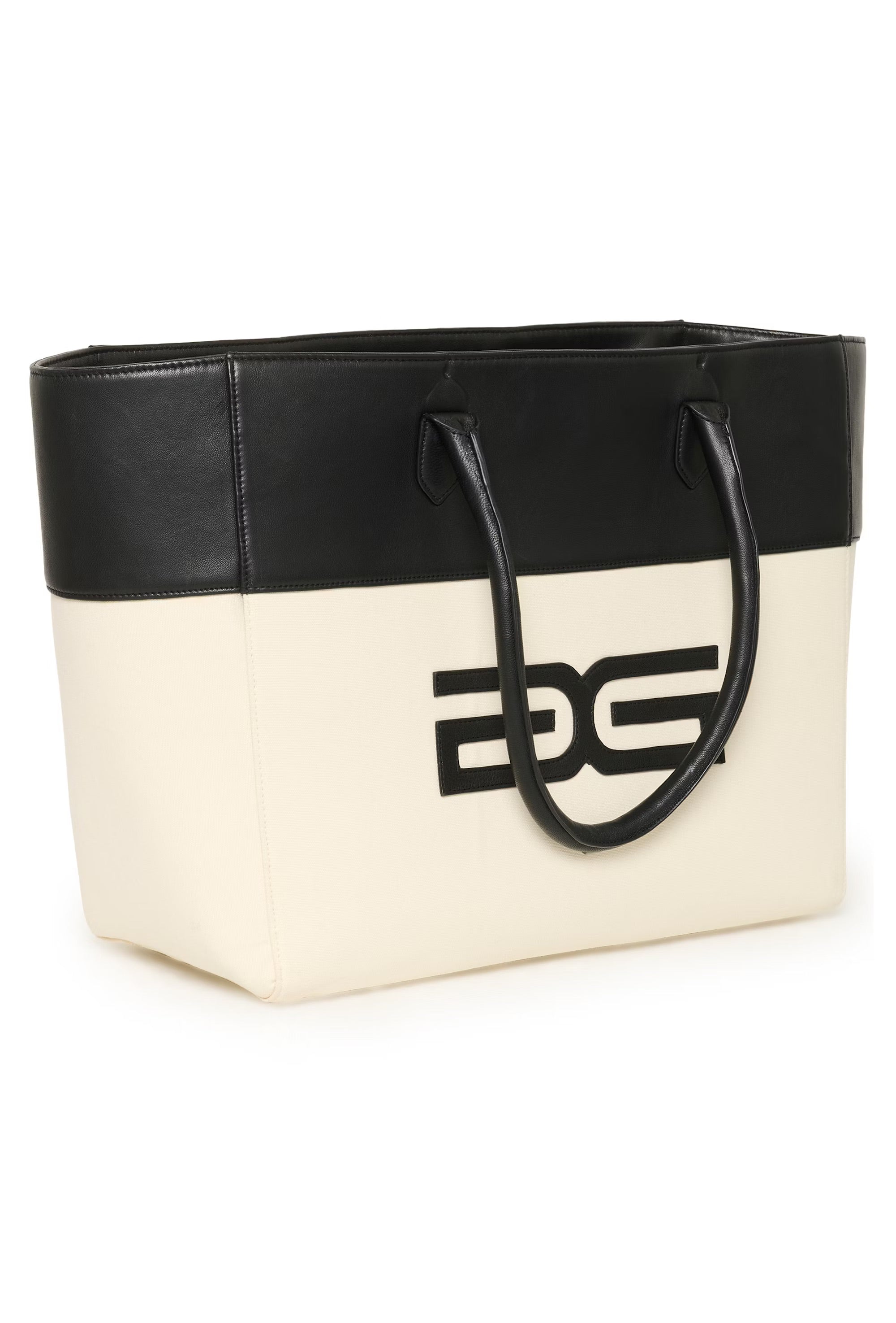 Spacious tote bag crafted from 100% leather with a structured silhouette, contrast panel design, and twin top handles. Features a bold front logo and roomy interior—ideal for everyday essentials.