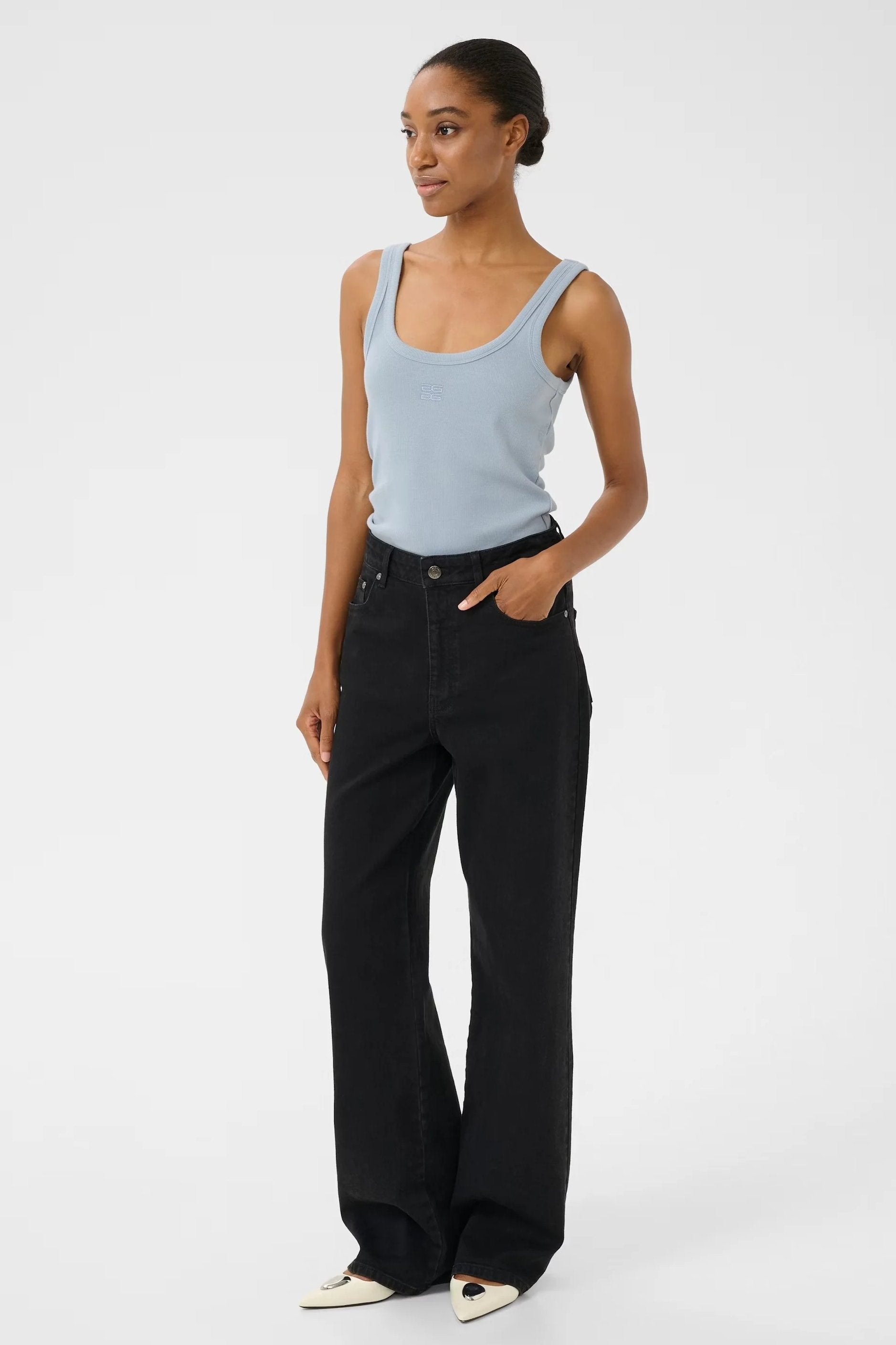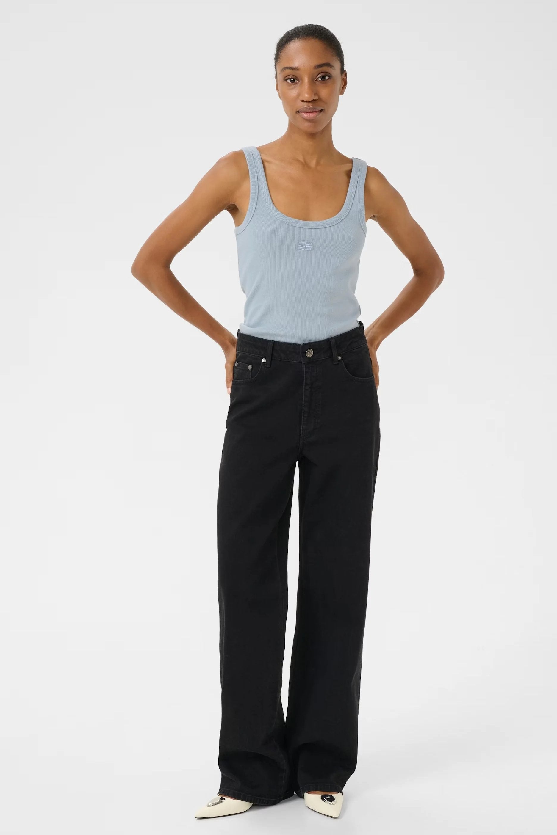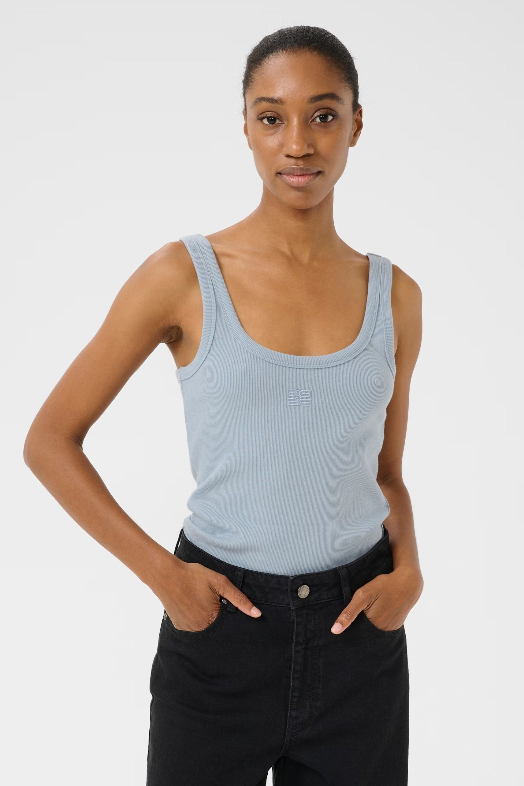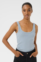- Rib scoop neck signature tank. Finished with external bind, with double scoop neckline.