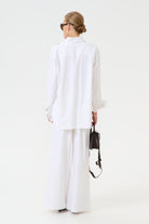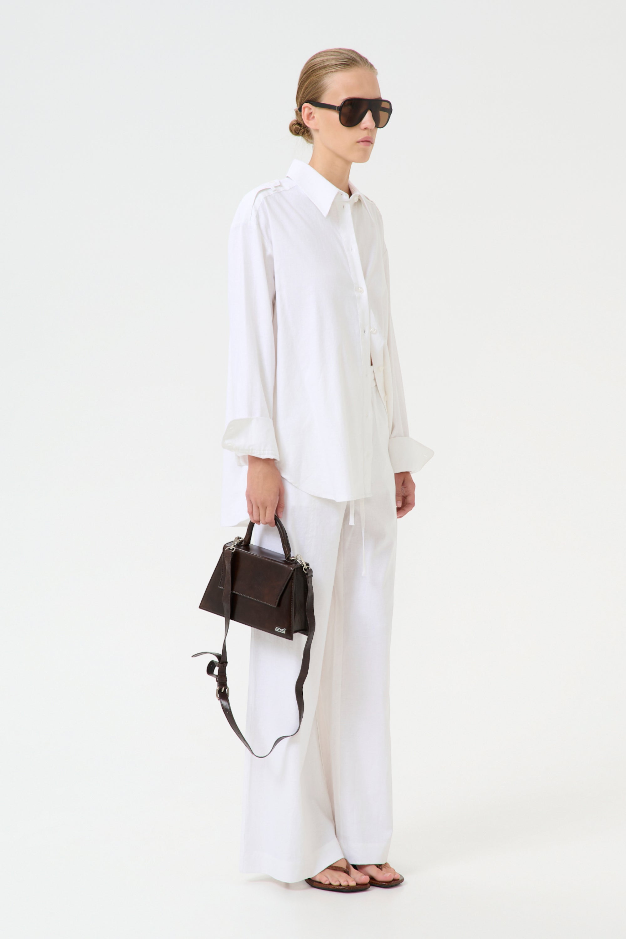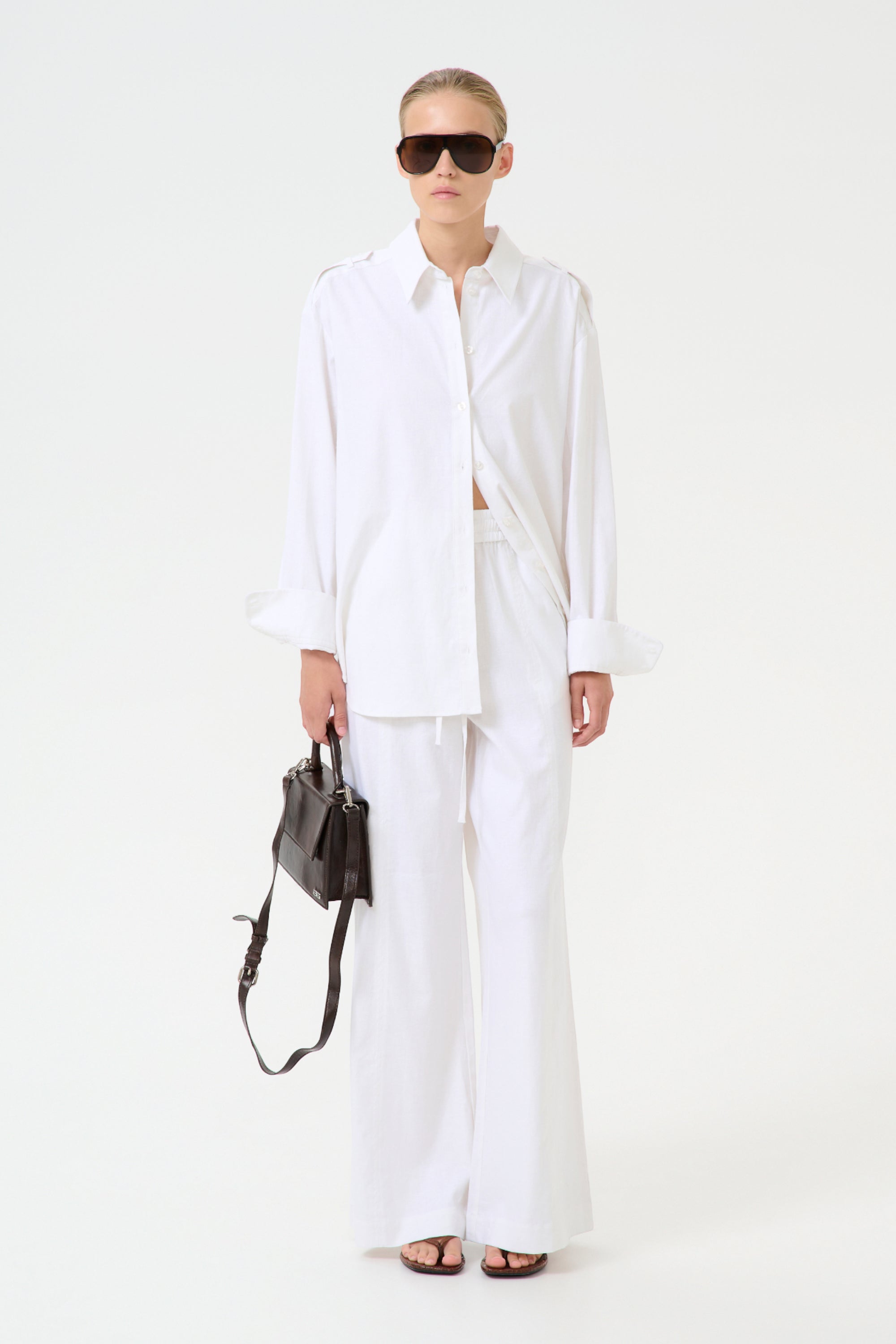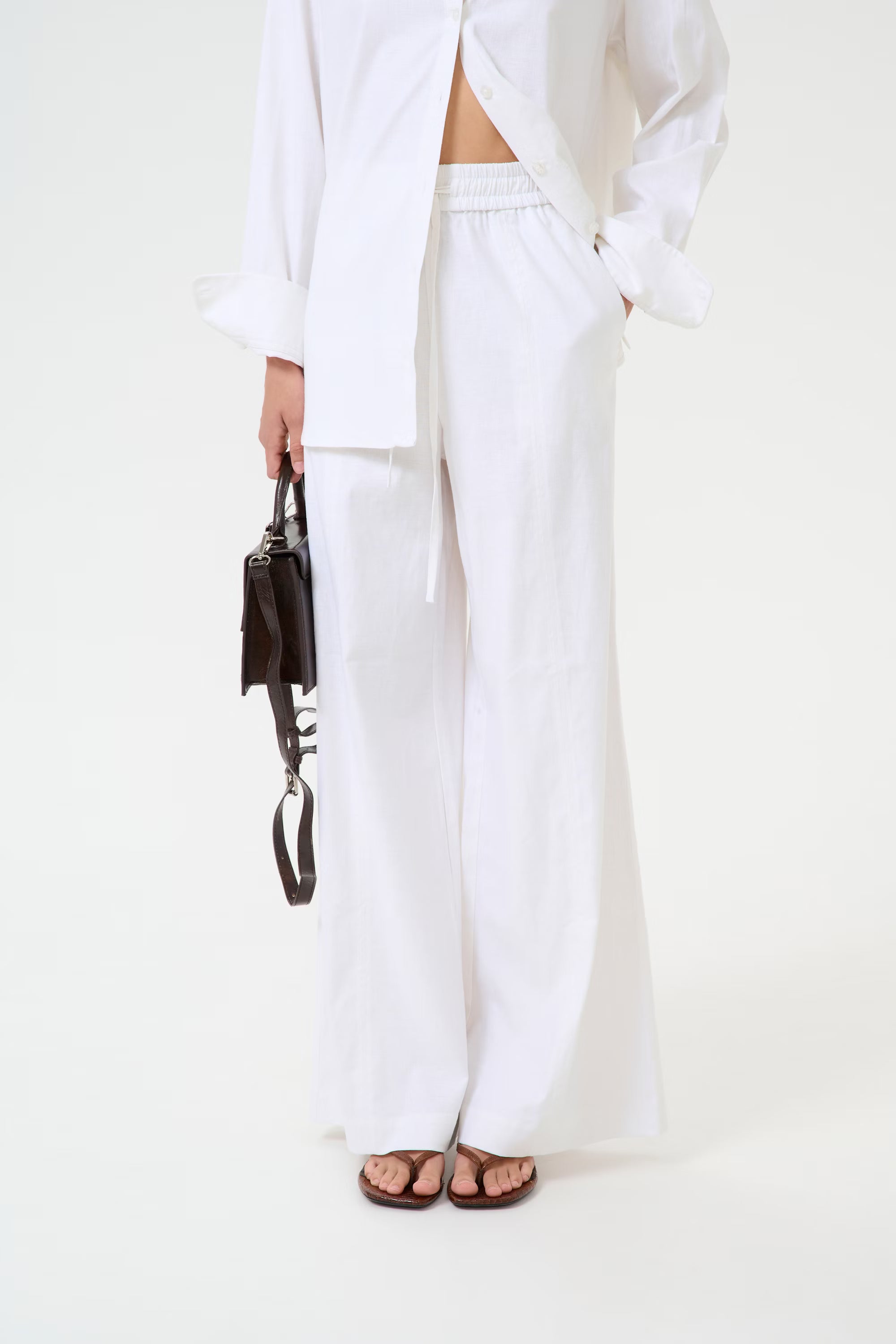 Relaxed wide-leg trousers with an elastic waistband and adjustable drawstring. Made from soft, breathable fabric for everyday comfort - a versatile piece for effortless styling.