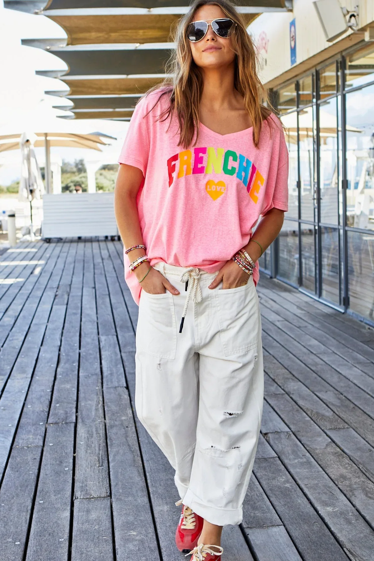 - Slouchy utility pockets on the front and back