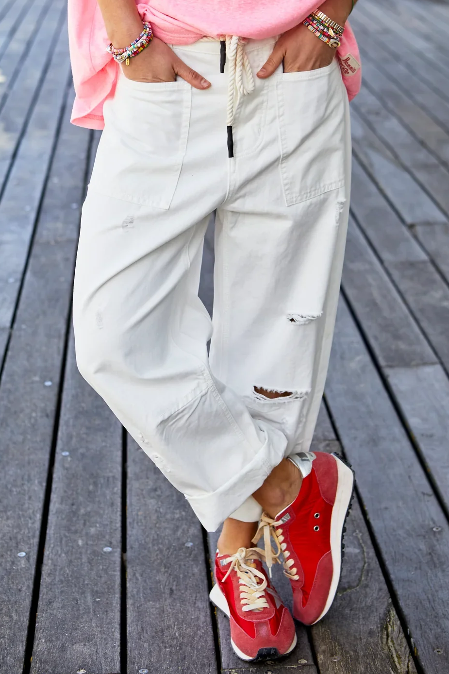 - Natural draw cord and waistband with belt loops.