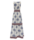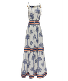 Where the enchantment of hand block printing meets the laid-back luxury of a maxi dress. An exclusive palm print, handcrafted in India, features tranquil blue tones and vibrant orange finishes, creating a visual symphony of tropical bliss. Hand block printed palm tree design is created with a single motif, 4 individual blocks are layered skilfully to create a single motif. The coconut palm is a symbol of prosperity and fertility in Indian culture.