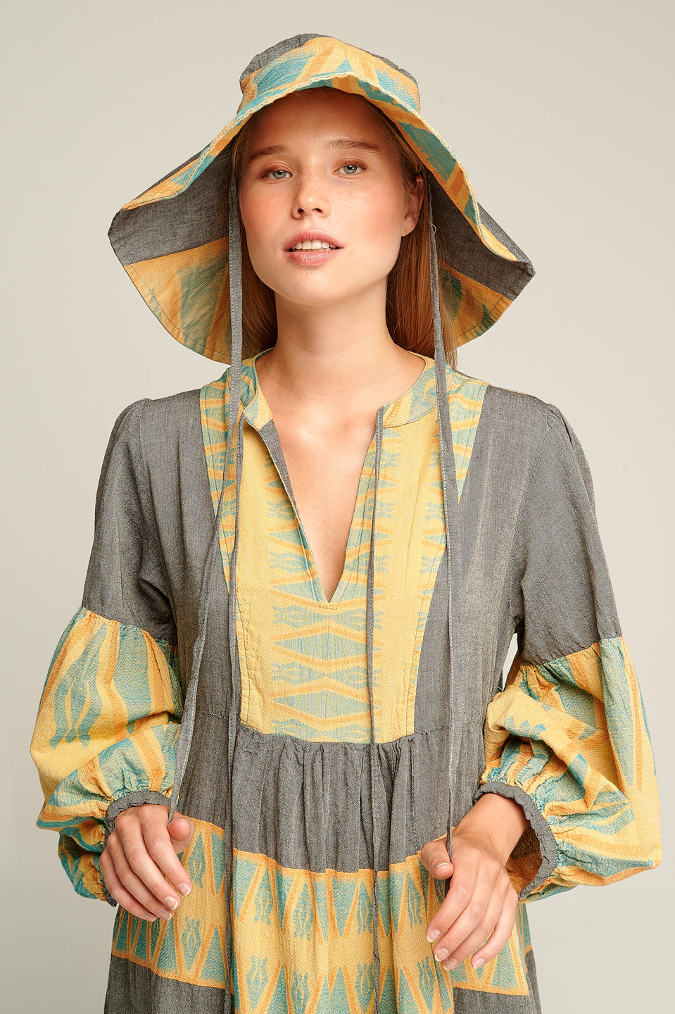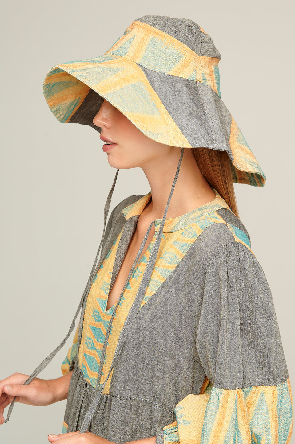 A beautifully soft cotton hat with a wide and downwards sloping brim which can be worn back with the matching Pearl & Caviar Dress. So many to choose from. Make a gorgeous statement this Summer.
