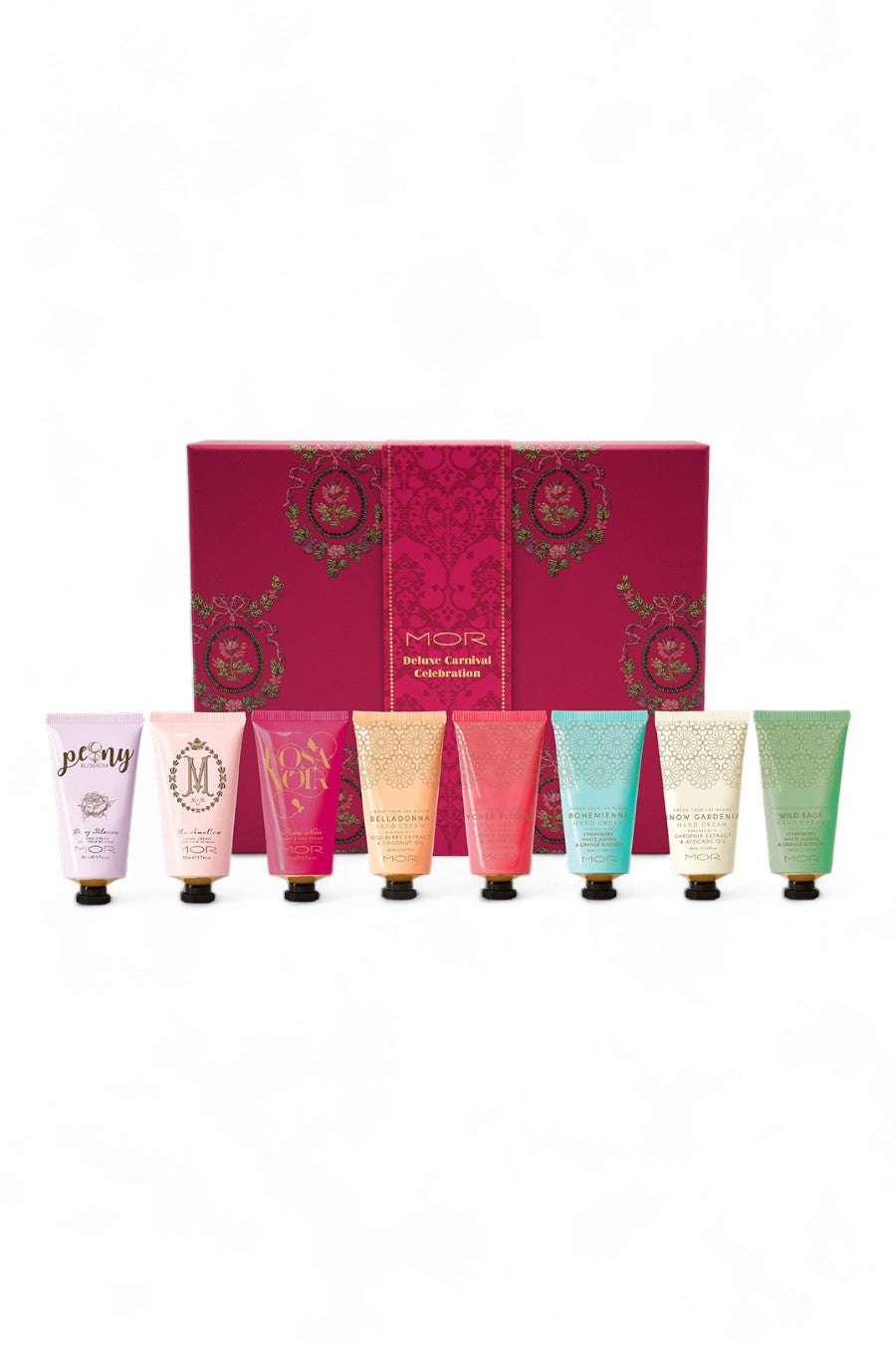 Our Festive Season Hand Cream Celebration! Spoil yourself with this deluxe collection of eight pursed sized and lightly scented Hand Creams. Enriched with moisturising and conditioning ingredients, each hand cream leaves hands feeling silky soft and festive season ready. (Value $79.60)