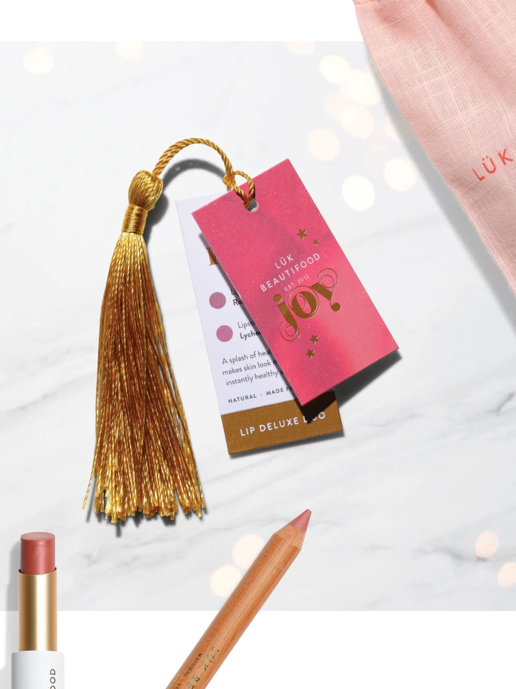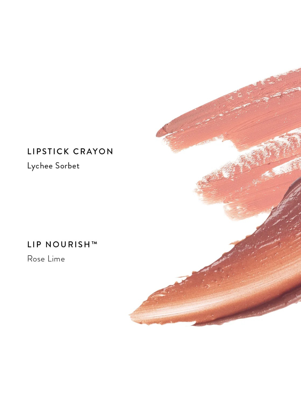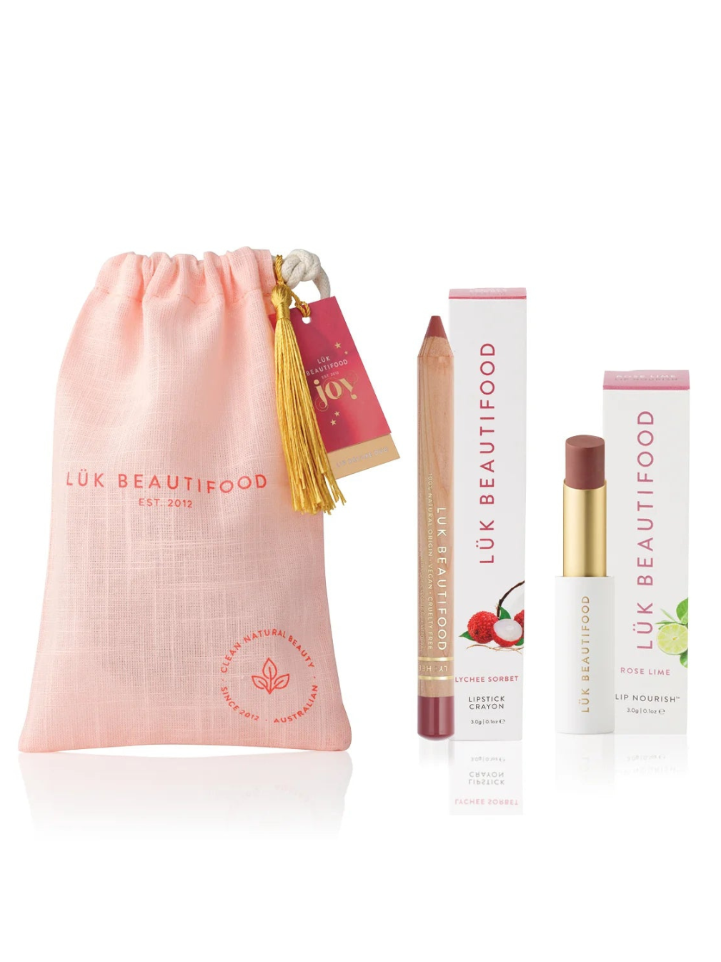 Lip Duo Deluxe in Nude Rose is the perfect curated pair of our best-selling balmy natural Lip Nourish™ and Lipstick Crayon. This splash of healthy nude gives the perfect natural lip, to make your skin look more alive and instantly healthy and glowing. Give the gift of double happiness, beautifully packaged in an eco luxe bag with gold tassels and a tag ready to gift or keep!