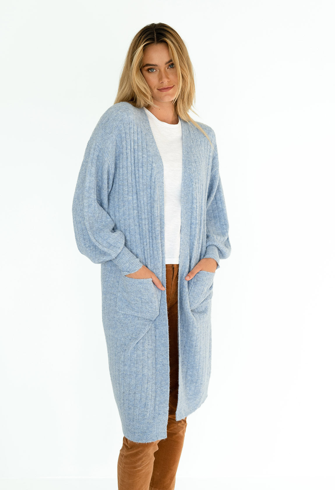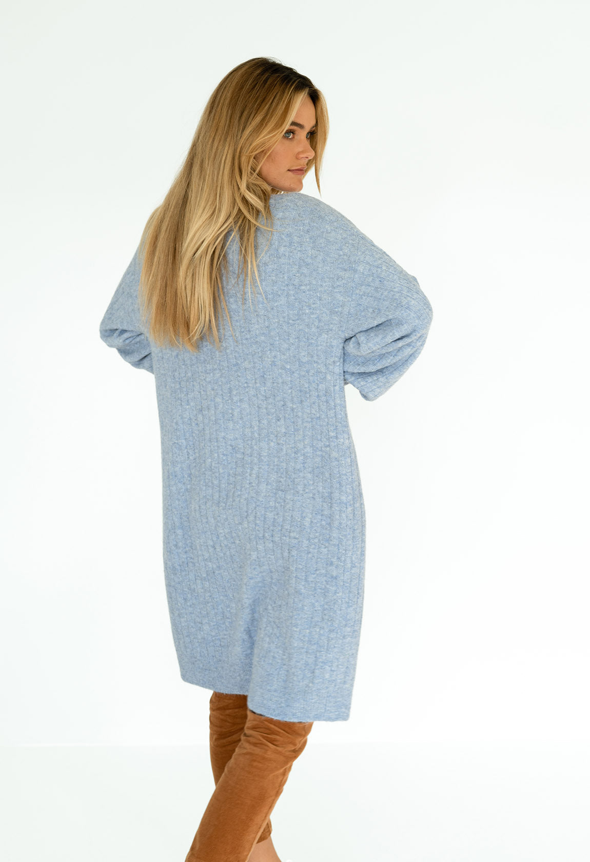 - Ribbed cuff, creating a soft balloon sleeve
