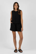 This classic sleeveless top is a re-vamped favourite with an improved fit. Elevate your look by matching it with our Ramona Shorts or pair with your favourite jeans for an effortless summer look. Play it safe with our White or Black colour option or make a statement in our Brick or Blush colour.