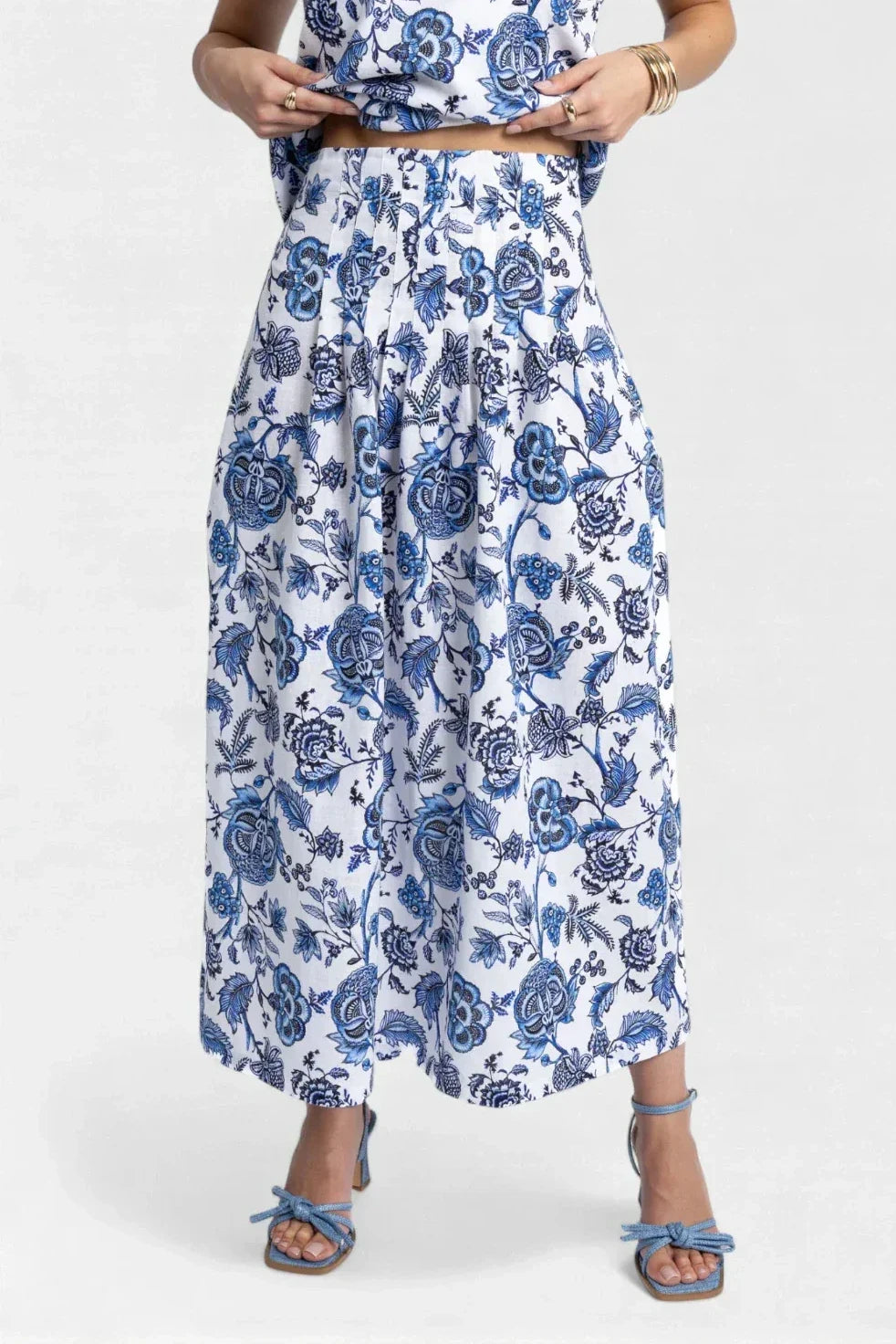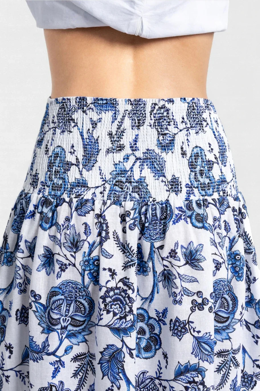 This effortlessly stylish midi skirt in our gorgeous Le Jardin print features flattering pleat detailing and a super comfortable elasticated waistband. The perfect piece to elevate your summer wardrobe with effortless elegance. The lower skirt section is loose, light and very comfortable. Pair with our matching Le Jardin Strapless Top or Rosa Blouse for a stunning set or the Collette Tank for everyday wear.