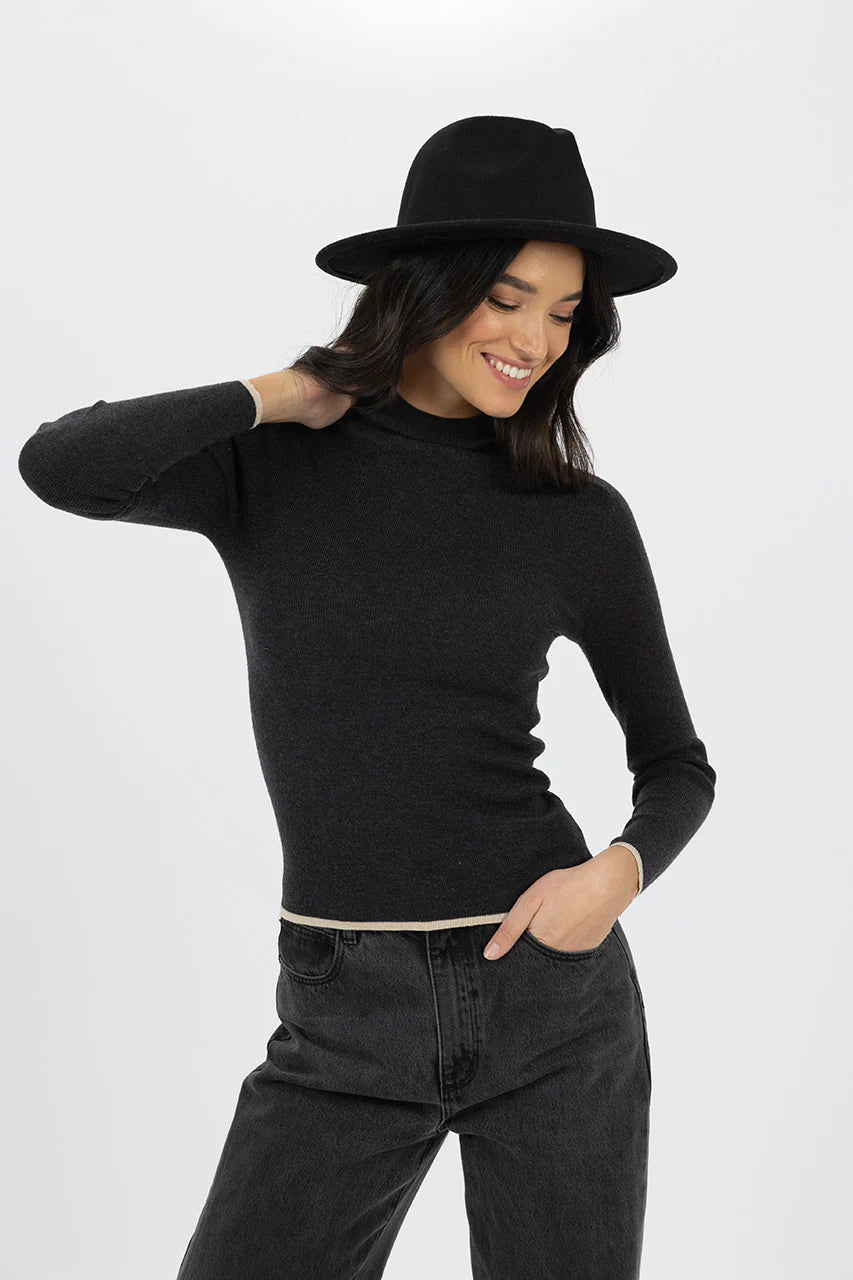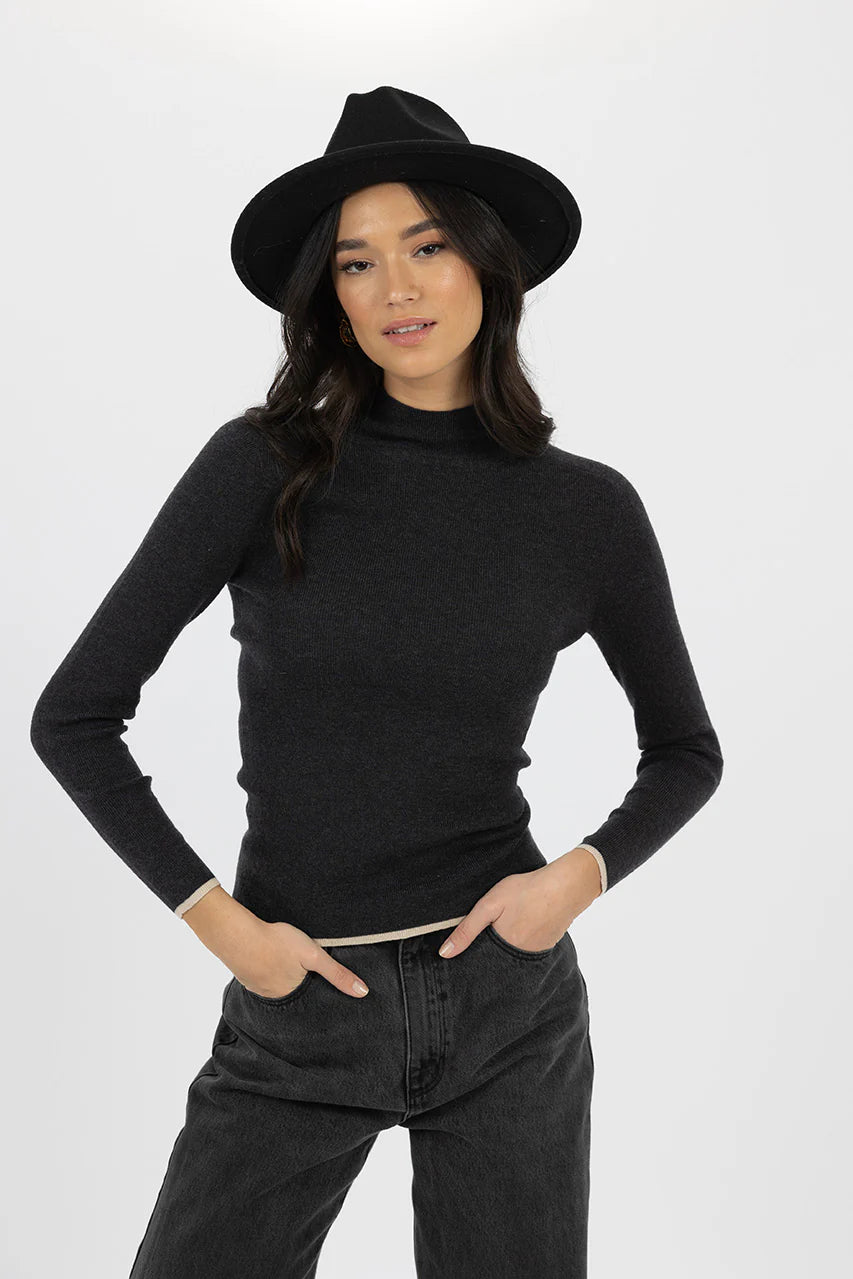 Papillon Skivvy in Charcoal/Cream