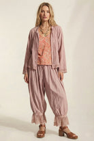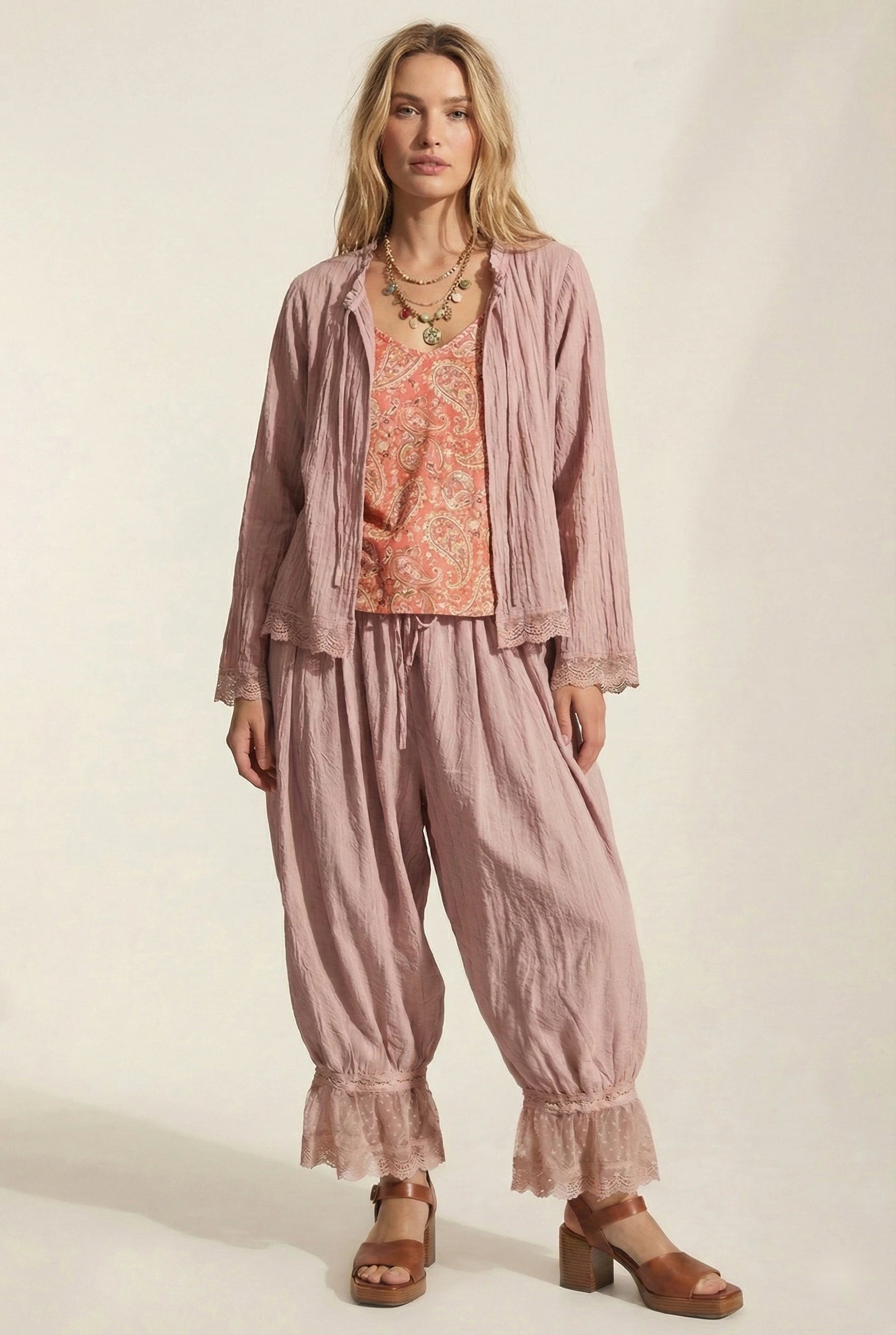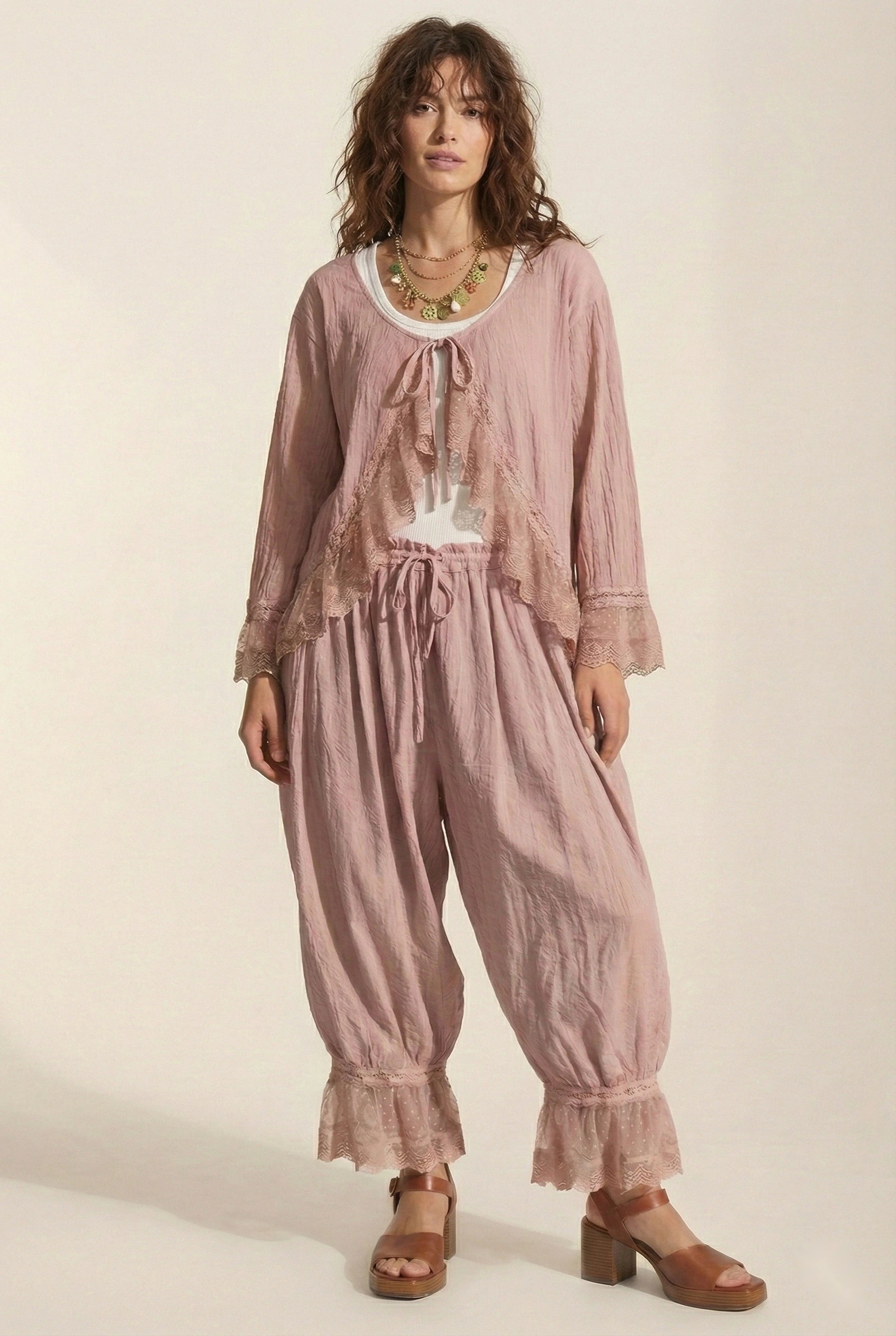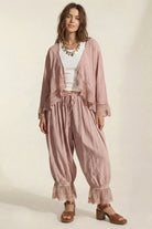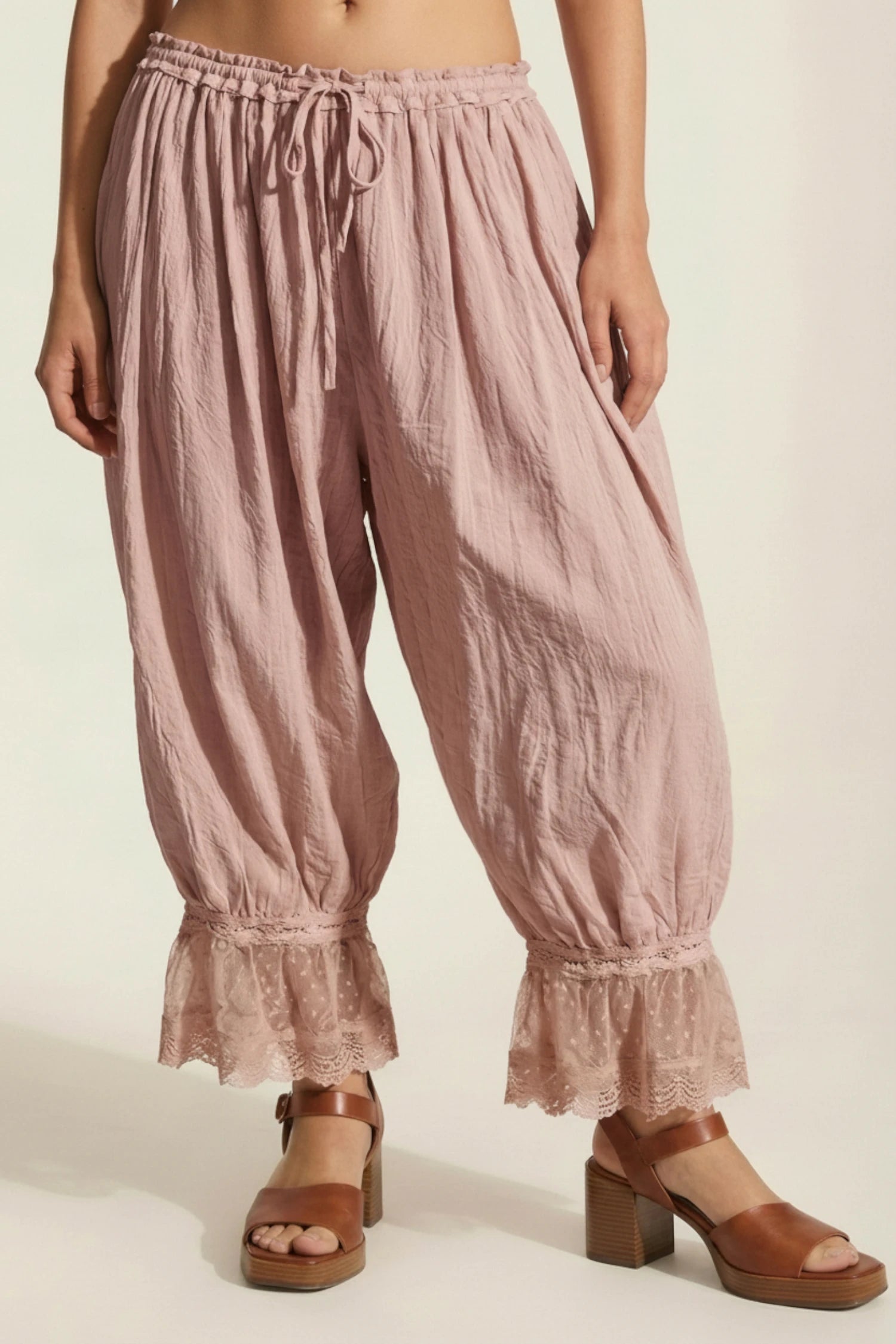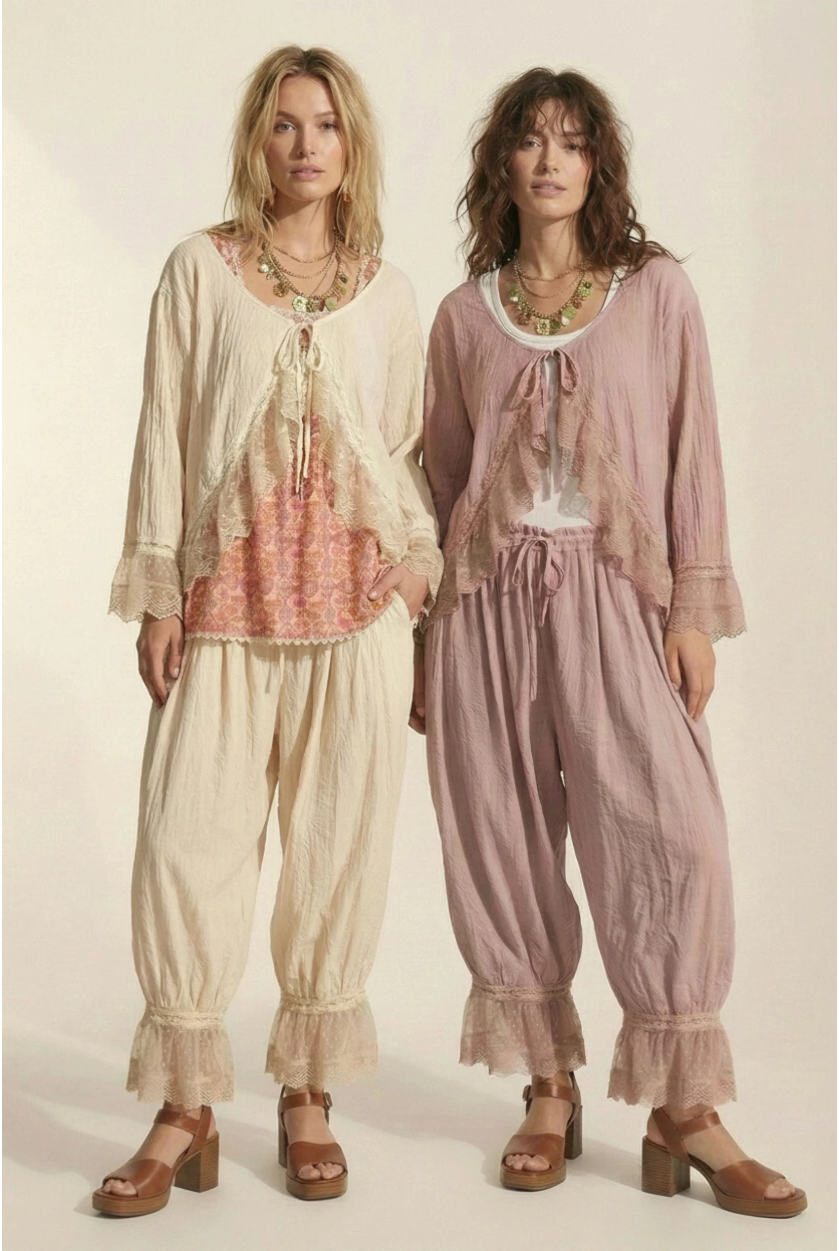 The Alluring Romance Bloomers in Oatmeal are a must-have for lovers of vintage-inspired fashion and elevated everyday loungewear. Made from soft, breathable cotton, these relaxed-fit bloomers offer a flattering silhouette with a gathered waist and leg line. Detailed with delicate lace trimming and fine pintuck accents, they bring a romantic, cottagecore aesthetic to your wardrobe. Whether styled under dresses for modesty and layering, or paired with an oversized shirt or matching vest for chic, off-duty comfort—these feminine bloomers blend style, ease, and versatility in one dreamy piece.